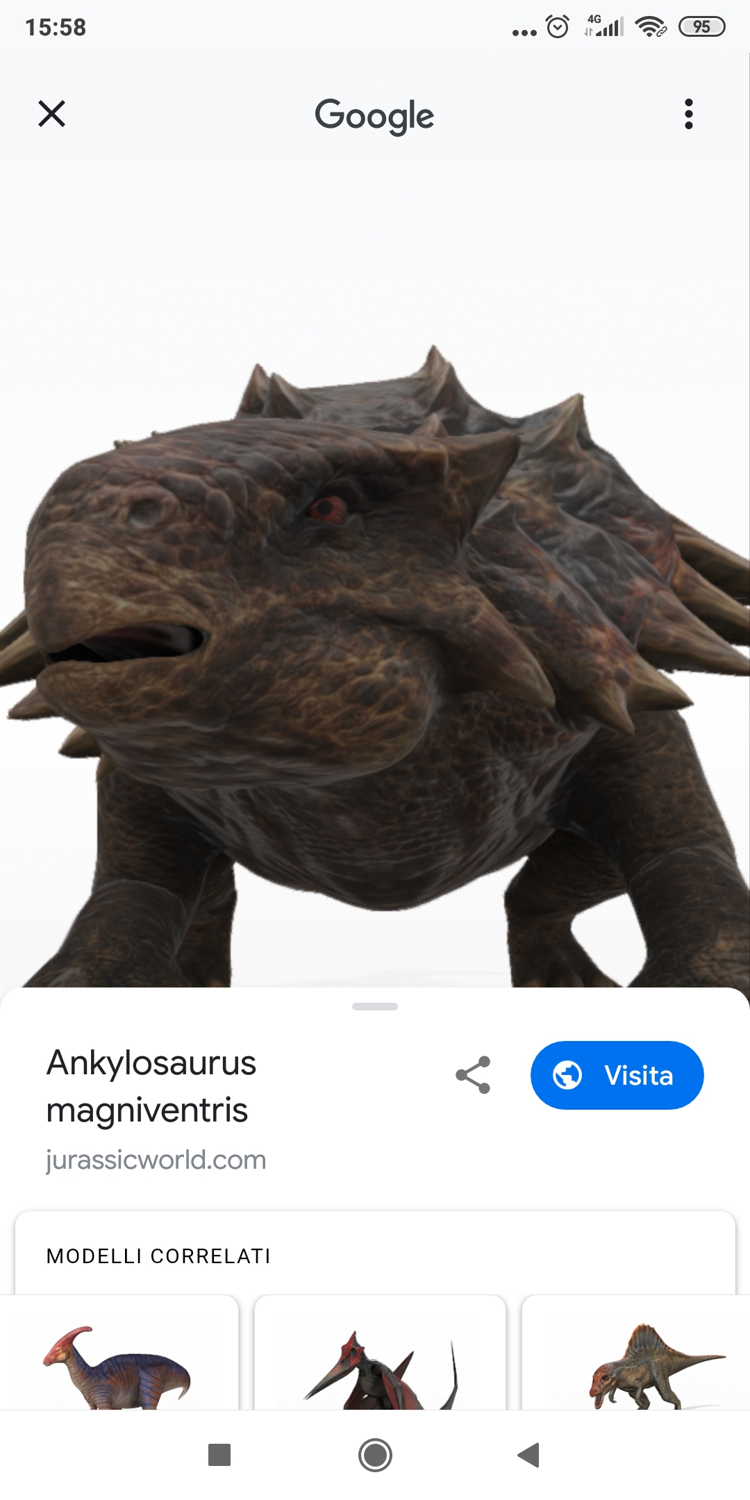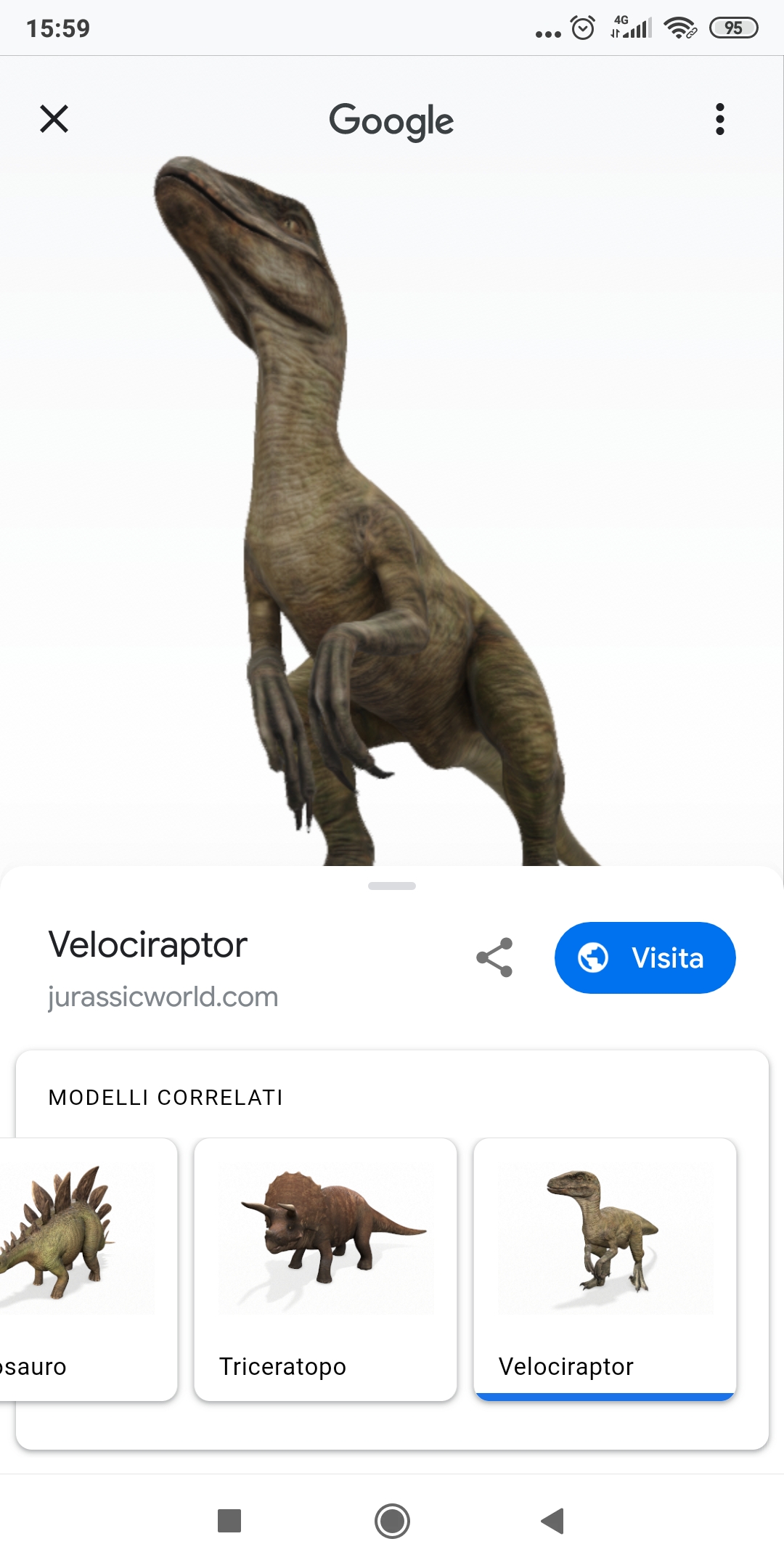 Su Android è sufficiente cercare “dinosauro” o uno dei 10 dinosauri sull’app Google o su qualsiasi browser Android e toccare “Visualizza in 3D” selezionando quale rettile visualizzare sui dispositivi con Android 7 o versioni successive, mentre le funzionalità AR sono fruibili sui dispositivi abilitati per Google Play Services per AR (ex ARCore) con i quali è possibile anche creare video AR o ricreare le scene preferite di Jurassic World con l’opzione di registrazione.