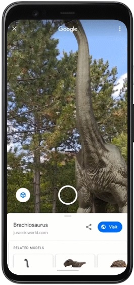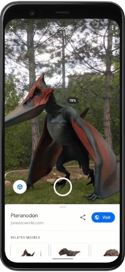 Cercando un dinosauro su Google utilizzando un dispositivo mobile e toccando su “Visualizza in 3D” è possibile ruotare o ingrandire il rettile per vederlo da vicino e portarlo nel proprio spazio AR per rendersi conto delle sue dimensioni in relazione alle cose circostanti, inoltre sui dispositivi Android è possibile udire i passi fragorosi e i ruggiti di ogni dinosauro.
