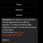 A questo punto qualsiasi nuovo articolo pubblicato dalla redazione di Sky Sport inerente alla tua squadra verrà automaticamente condiviso tramite una notifica.