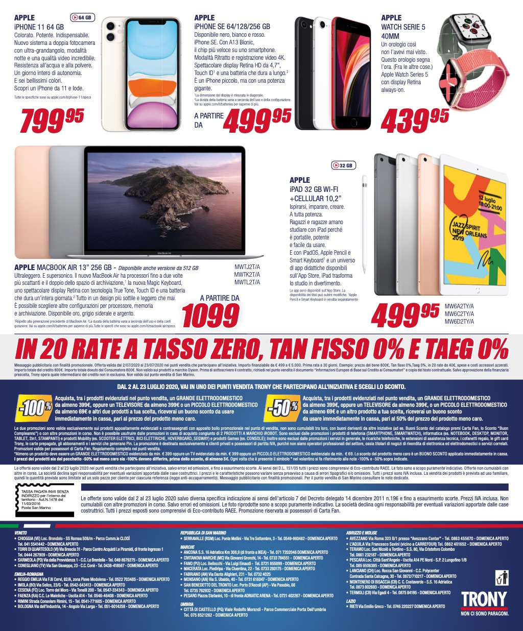 Per dare un’occhiata a tutte le offerte del volantino Trony “Prendi 3 Paghi 2” potete seguire questo link. Per scoprire tutti i prodotti aderenti all’iniziativa potete recarvi in uno dei punti vendita Trony tra il 2 e il 31 luglio 2020.