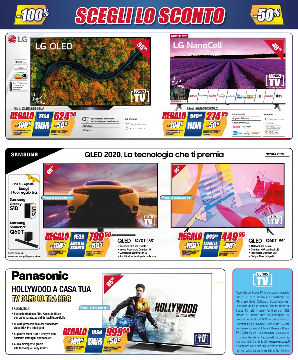 - acquistando, tra i prodotti tra quelli evidenziati nel punto vendita, un grande elettrodomestico da almeno 399 euro, oppure una TV da almeno 399 euro, o un piccolo elettrodomestico da almeno 69 euro e altri due prodotti a vostra scelta, riceverete un buono sconto da usare subito in cassa corrispondente al prezzo del prodotto meno caro;