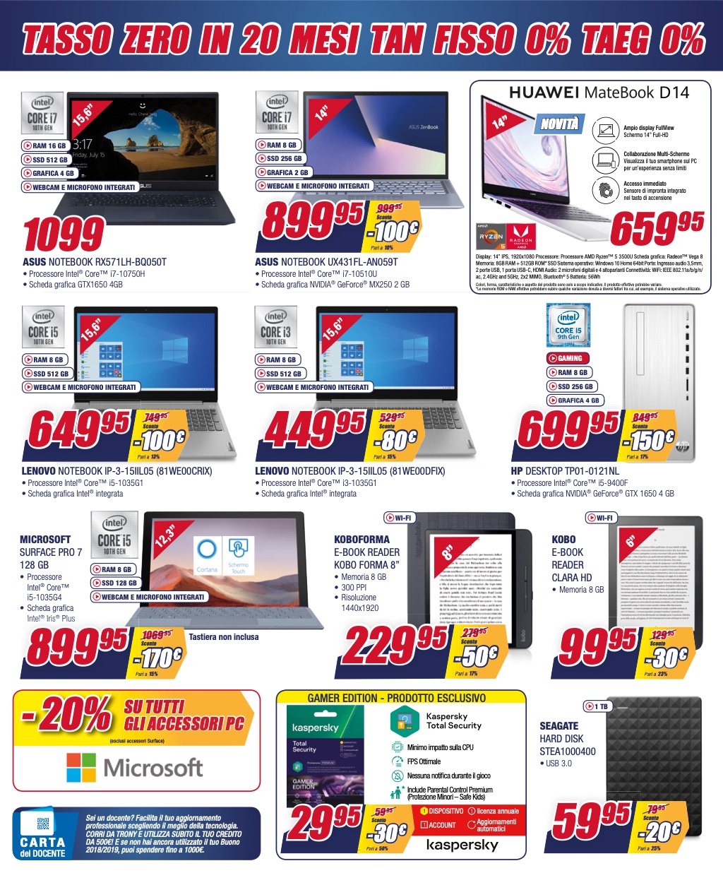 - Microsoft Surface Pro 7 128 GB a 899 euro;