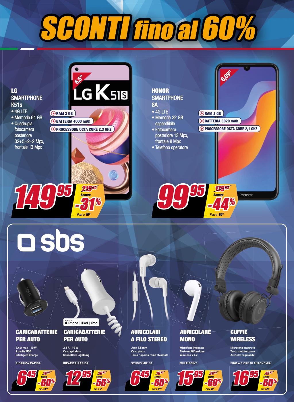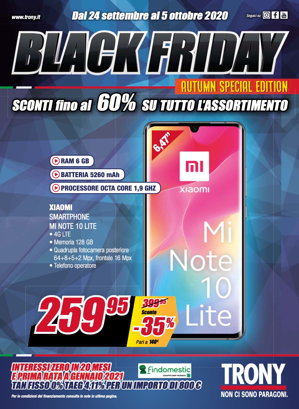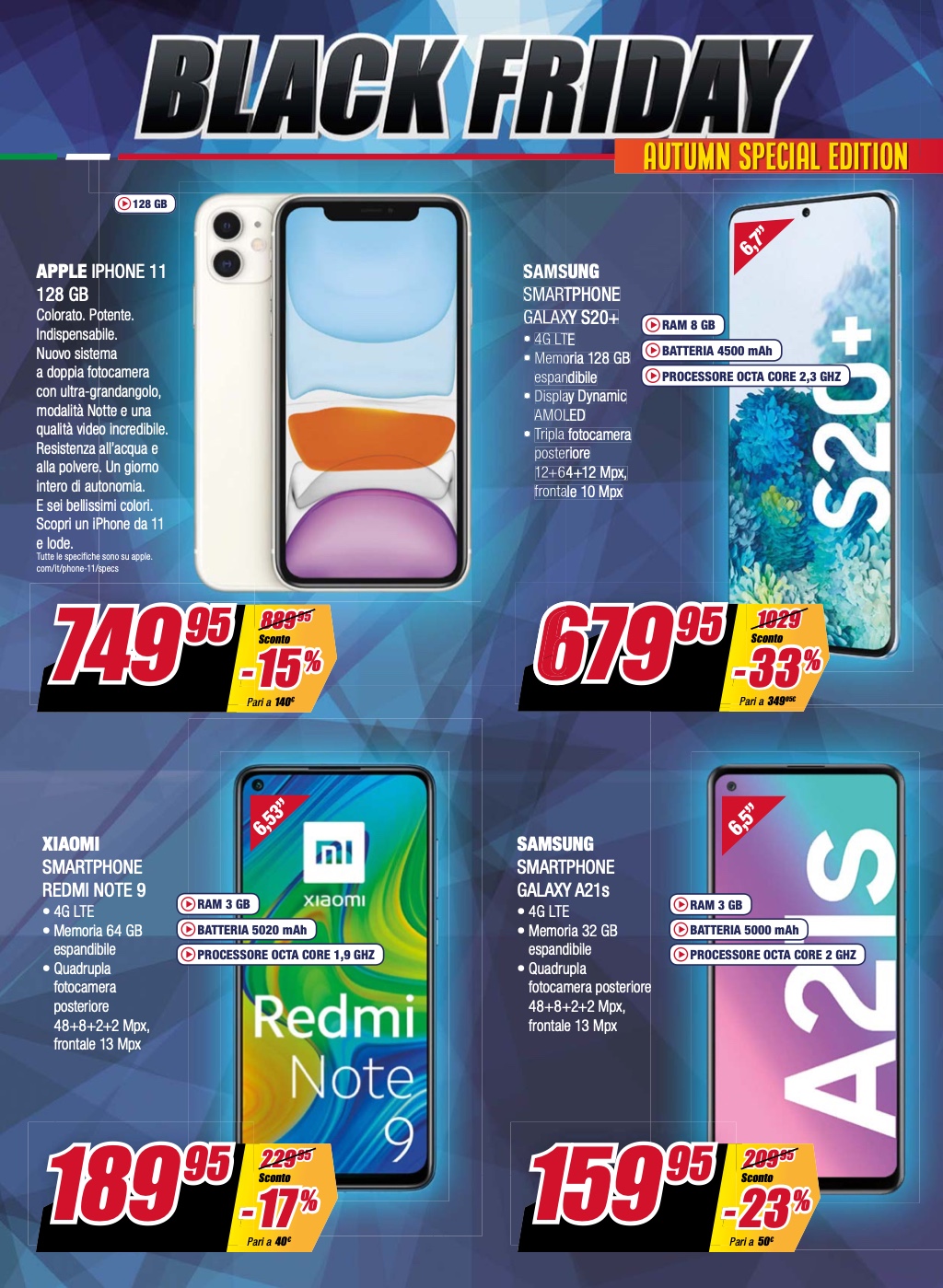 L’altro volantino si chiama Black Friday – Autumn Special Edition, è valido fino al 5 ottobre 2020 solo in Veneto, Emilia Romagna, Marche, Umbria, Abruzzo, Molise, Rieti e in questo caso offre sconti fino al 60% su tutto l’assortimento e il finanziamento a tasso zero con prima rata a gennaio 2021. Così come per l’altro volantino, non sono niente male le offerte che interessano gli smartphone (per tutte le altre, come sempre, si faccia riferimento al volantino completo):