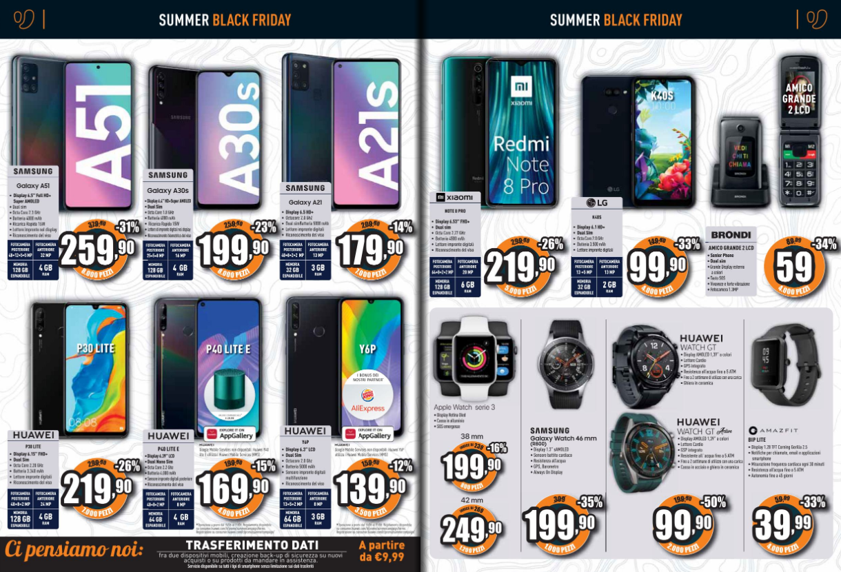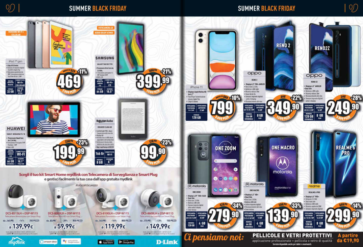 Tra gli smartphone Android possiamo trovare in offerta anche altri device di casa Samsung, come Galaxy A30s a 199,90 euro e Galaxy A51 a 259,90 euro, accompagnati da diversi prodotti a marchio Huawei, tra cui Huawei P30 Lite (219,90 euro) e Huawei P40 Lite E (169,90 euro). Completano il quadro Redmi Note 8 Pro (219,90 euro), OPPO Reno 2, OPPO Reno2 Z (249,90 euro), LG K40S (99,90 euro), Realme 6 Pro (299,90 euro) e la coppia Motorola One Marco (139,90 euro) e Motorola One Zoom (279,90 euro). Uno solo l’esponente del mondo iOS, con Apple iPhone 11 128 GB proposto a 799 euro.