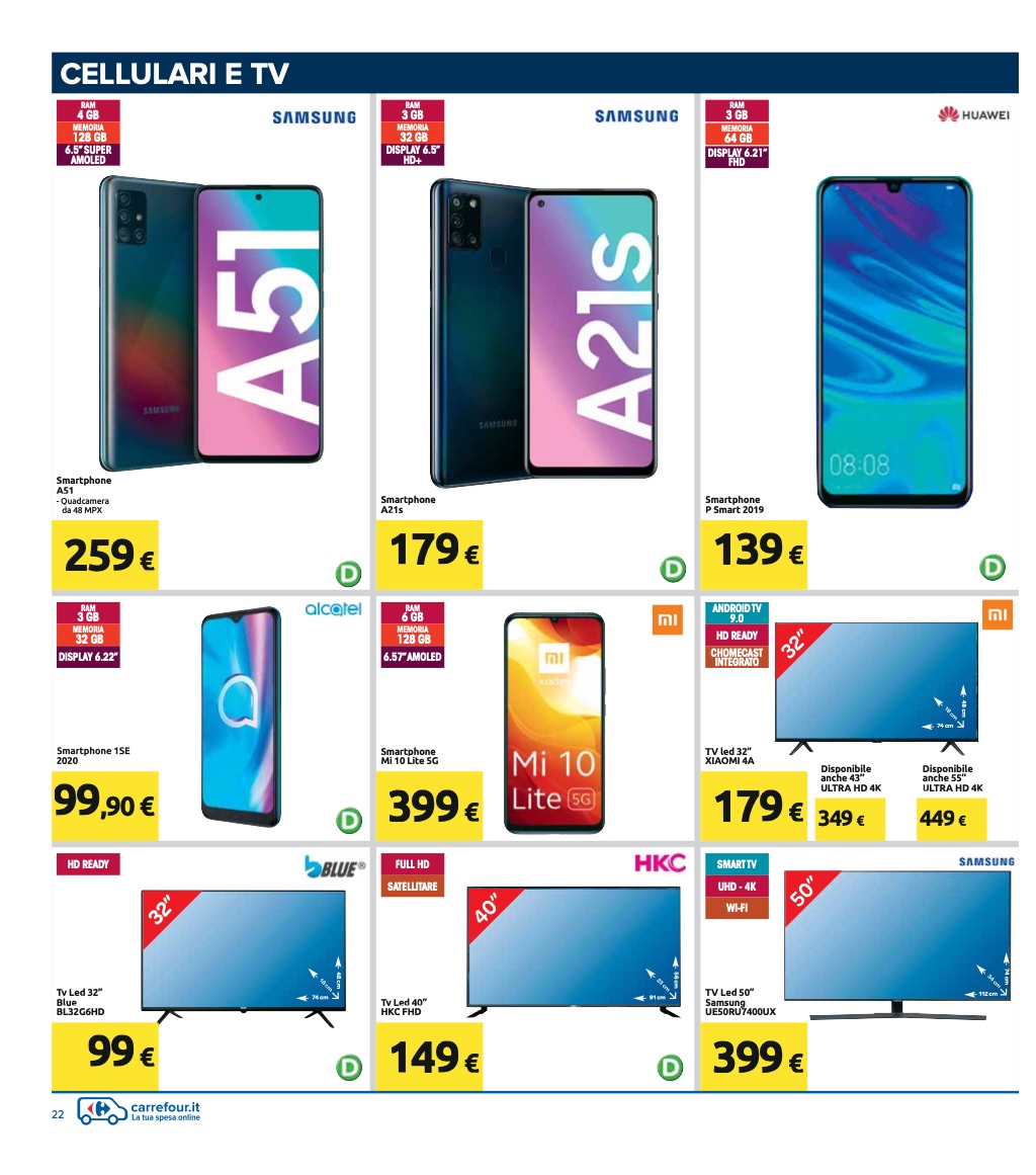 Il volantino di Carrefour, valido fino al 18 agosto 2020, nasconde, al suo interno, delle offerte interessanti su diversi smartphone Android, per i quali ci sarà uno sconto fino a 150 euro rispetto al prezzo di listino nonché la possibilità di usufruire del finanziamento a tasso zero in 20 rate (TAN fisso 0%, Taeg 0%). A dirla tutta, gli smartphone in promozione non sono poi così tanti, ma abbiamo comunque deciso di segnalarvi le migliori, cui si aggiungono alcune TV (NdR, invece nella galleria a fine articolo sono presenti tutti gli altri prodotti in promozione).