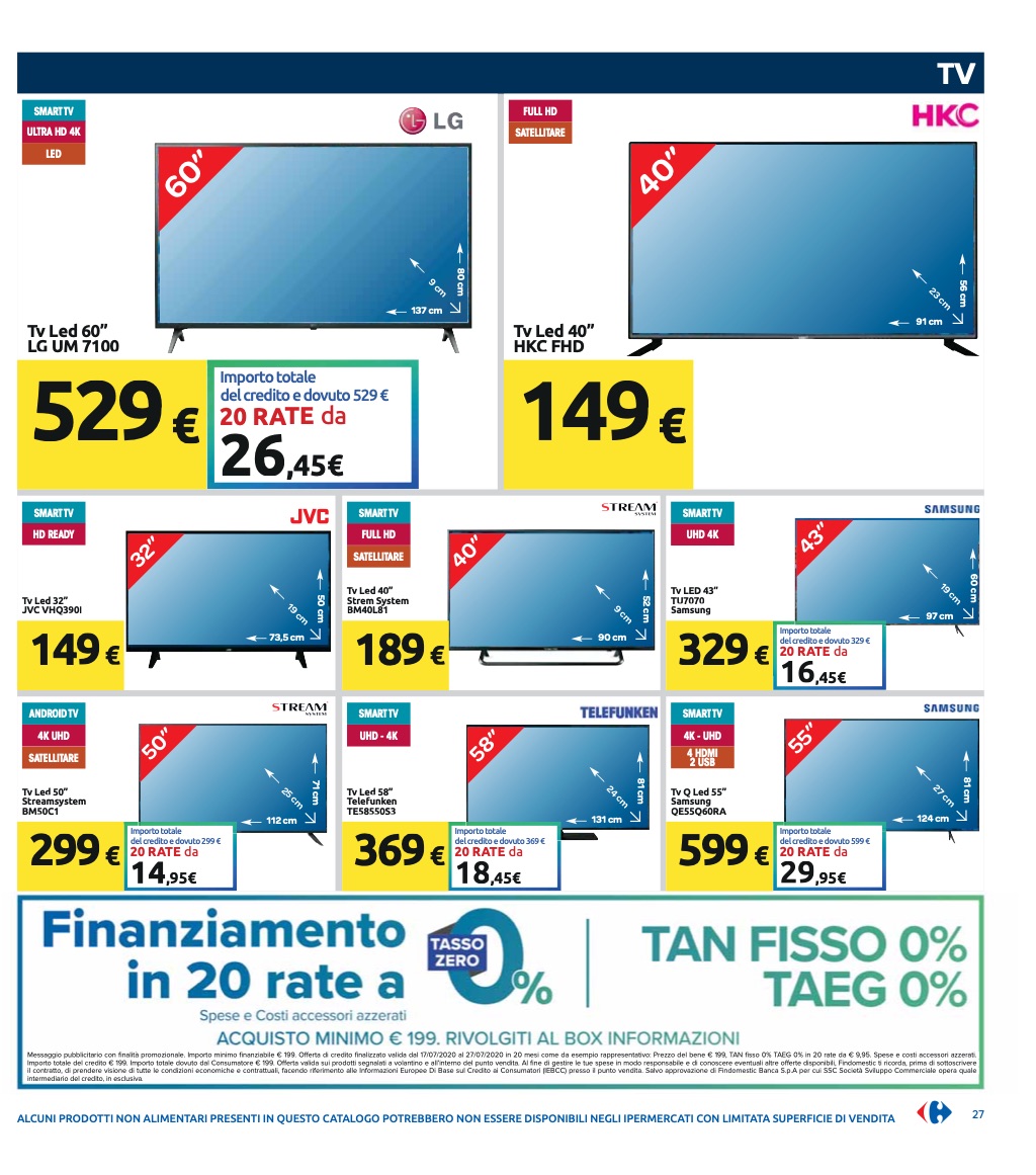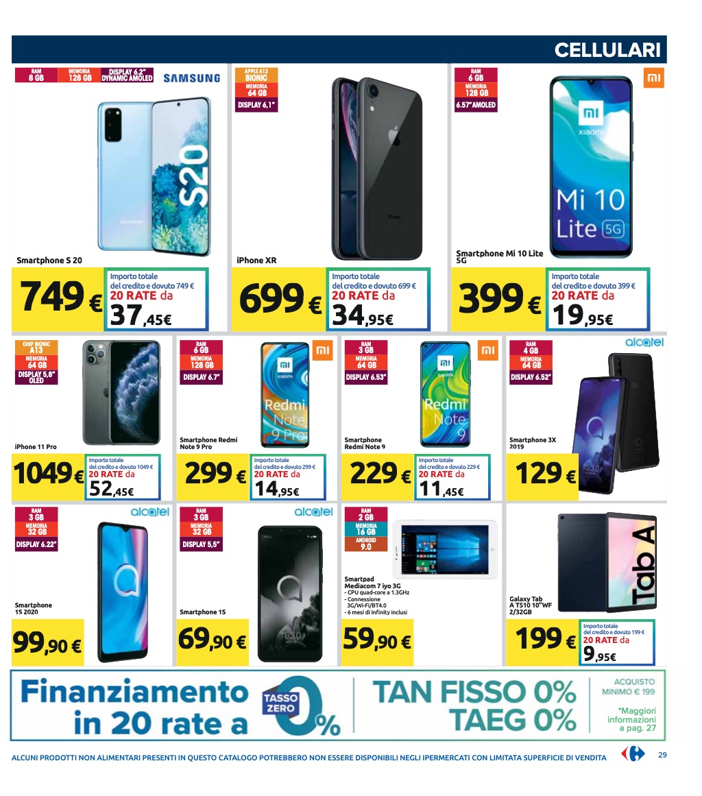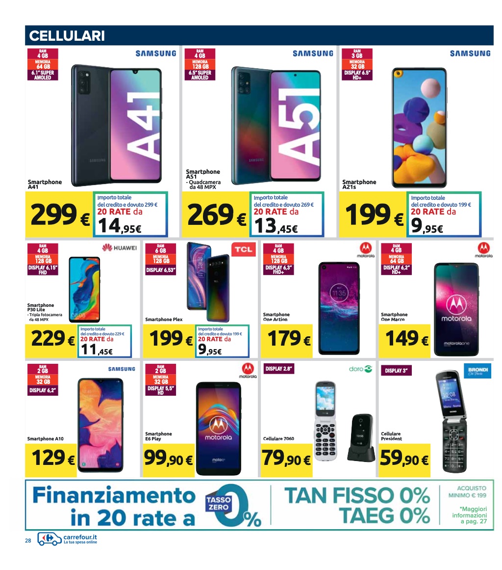 Il volantino di Carrefour, valido fino al 27 luglio 2020, nasconde, al suo interno, delle offerte interessanti su diversi smartphone Android, per i quali ci sarà uno sconto fino a 150 euro rispetto al prezzo di listino nonché la possibilità di usufruire del finanziamento a tasso zero in 20 rate (TAN fisso 0%, Taeg 0%). A dirla tutta, gli smartphone in promozione non sono poi così tanti, ma abbiamo comunque deciso di segnalare le migliori qui di seguito (NdR, invece nella galleria a fine articolo sono presenti anche alcuni smart TV in promozione):
