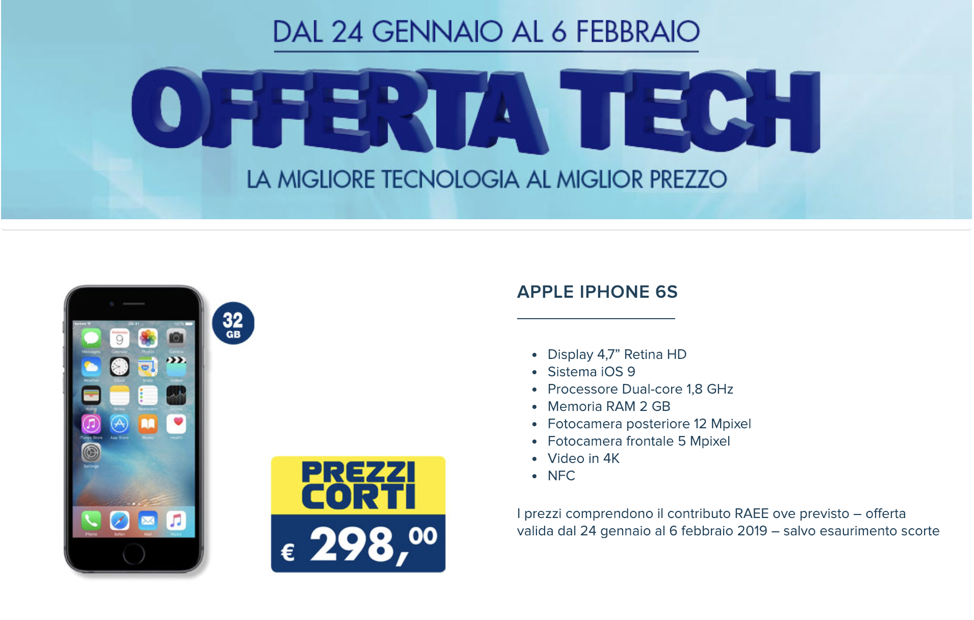 iPhone 6s sta venendo proposto a un prezzo di appena 298 euro da Esselunga che, a memoria, si tratta del prezzo più basso di sempre. Di conseguenza, se siete alla ricerca di un iPhone ma non volete spendere molto, si tratta di un’occasione da non lasciarvi scappare.