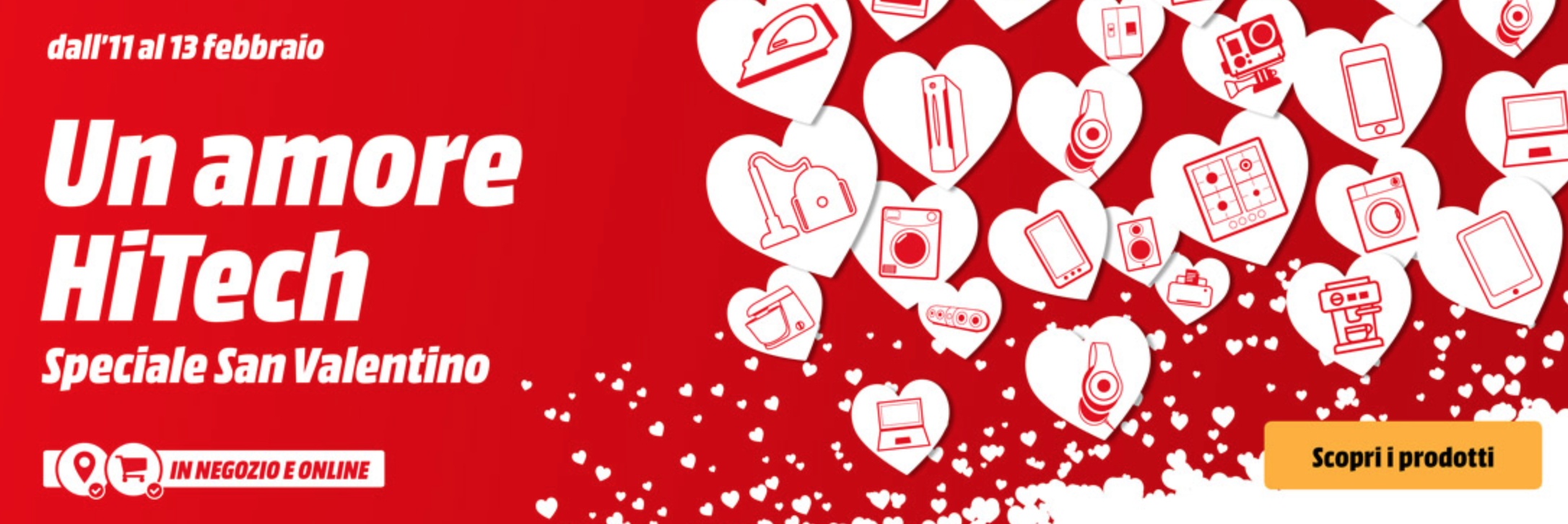 Dopo avervi riportato le migliori offerte Amazon per San Valentino, volgiamo la nostra attenzione a MediaWorld, colosso dell’elettronica e uno dei punti di riferimento del settore in Italia. In occasione di San Valentino, l’azienda sta proponendo l’iniziativa “Un amore HiTech” e che andrà avanti per tre giorni, fino al 13 febbraio, con offerte interessanti legati, fra le altre cose, ad iPhone, PS4, Nintendo Switch e Smart TV. Qui di seguito vi proponiamo quelle che, per noi, sono le migliori offerte MediaWorld per San Valentino.