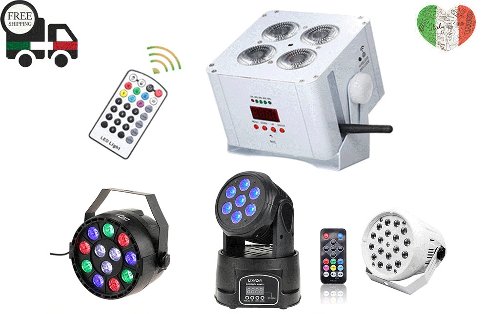 Sono quattro le varianti, con prezzi decisamente accessibili e che potete collegare alla vostra console per farle muovere a tempo di musica. Nel caso in cui foste sprovvisti ci un controller DMX512 niente paura, visto che potrete utilizzare il telecomando in dotazione per effetti di luce spettacolari o per attivare la modalità automatica.