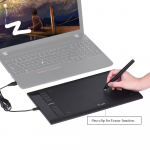 Ugee M708 ha una superficie utile di 10 x 6 pollici, circa 25 x 15 centimetri, completa ovviamente di una penna wireless con 2048 diversi livelli di pressione e 8 diverse punte intercambiabili. La tavoletta è compatibile sia con i sistemi Windows, da XP a Windows 10, sia con Mac OS 10.8 o superiori. Potrete utilizzarla con Adobe Photoshop CC, Illustrator, LightRoom, Corel Painter, Autodesk MAYA e molti altri software di disegno.