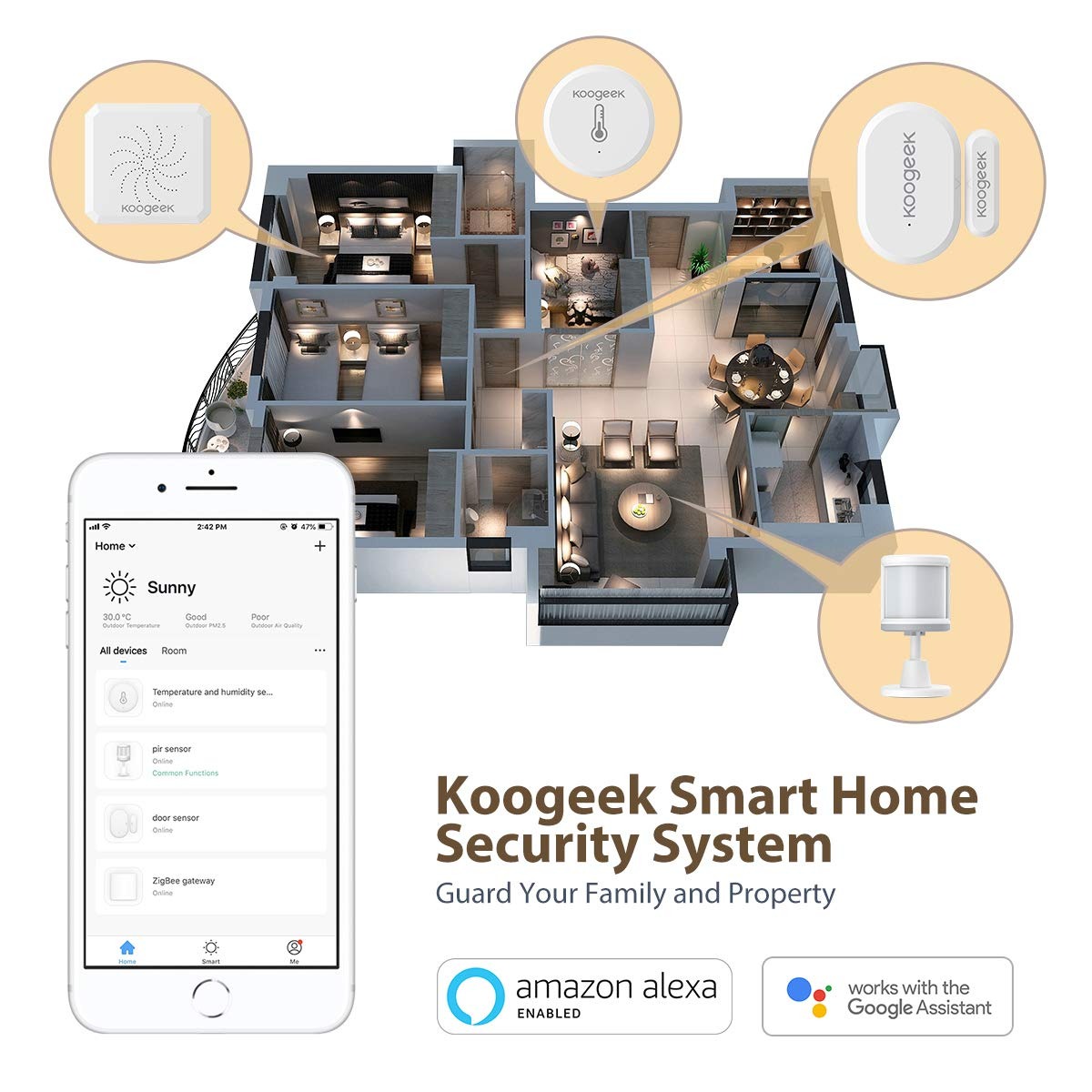 In questo modo potrete tenere sempre sotto controllo la vostra casa, anche da remoto, sapere se qualcuno è entrato in determinate stanze, far accendere la luce quando rientrate in casa e molto altro. Il sistema può essere controllato attraverso l’app Koogeek Life ma anche tramite gli assistenti vocali Google Assistant e Amazon Alexa.