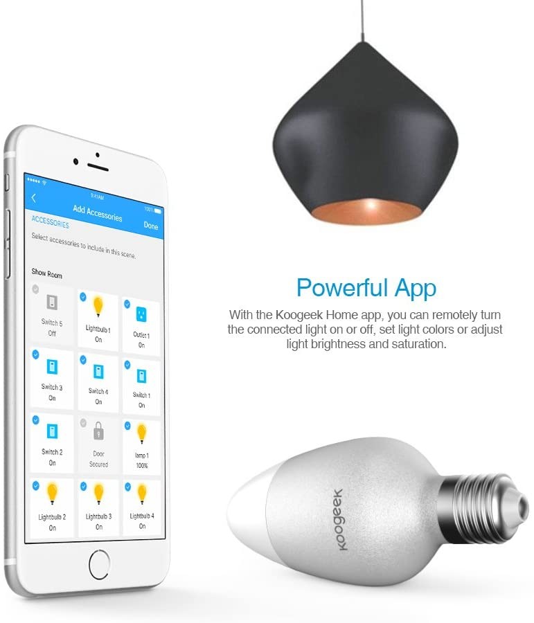 Anche la lampadina intelligente firmata Koogeek è controllabile tramite companion app o utilizzando gli assistenti vocali presenti in casa, come Google Assistant Alexa o HomeKit di Apple. La lampadina dispone di attacco E27 e ha una potenza di 8 watt, in grado di generare 500 lumen.
