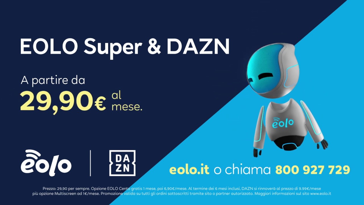 Al termine dei 6 mesi promozionali, i clienti Eolo Super potranno decidere se sospendere l’abbonamento a DAZN oppure se continuare ad usufruire del servizio al costo di 9,99 euro al mese (prezzo di listino). In tal caso, il costo mensile verrà inserito direttamente nella fattura di Eolo, così da avere tutto unificato. Se si rinnovasse l’abbonamento al servizio, si avrebbe accesso anche all’opzione Multiscreen al prezzo promozionale di 1 euro invece che di 5.