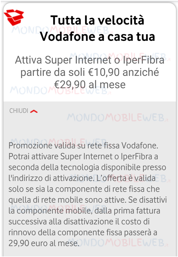 Per fidelizzare quanto più possibile i propri clienti di rete mobile, sembra proprio che Vodafone stia proponendo ad alcuni utenti selezionati le offerte Super Internet o IperFibra con dei prezzi speciali scontati: 10,90 euro oppure 15,90 euro al mese anziché 29,90 euro al mese.