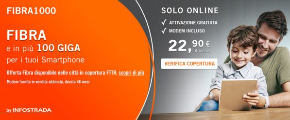 Nel caso foste raggiunti solo da linea ADSL, la promozione include anche il servizio Fibra Pass, che permette di attivare l’offerta in ADSL con la garanzia da parte di Tre di poter passare, non appena disponibile, alla connessione in fibra ottica senza alcun costo aggiuntivo.