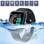 Partiamo con il modello D20, il più economico dei due ma non per questo privo di funzioni molto utili. Troviamo un quadrante rettangolare da 1,3 pollici, un cinturino con sgancio rapido che rivela un connettore USB, per ricaricare lo smartwatch senza bisogno di ulteriori cavi.