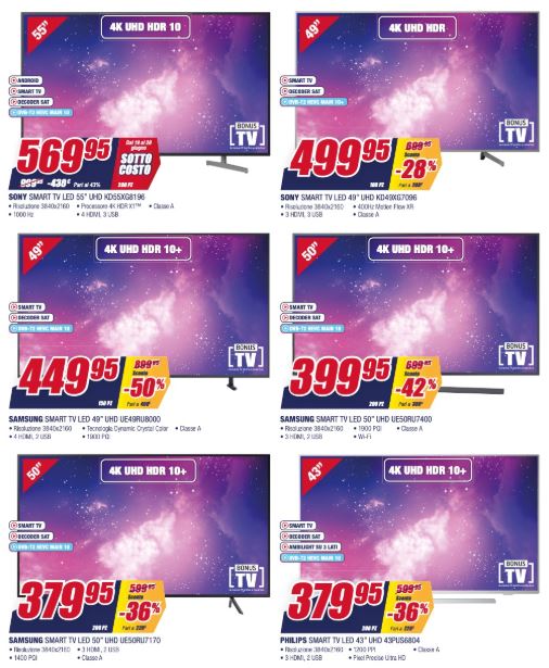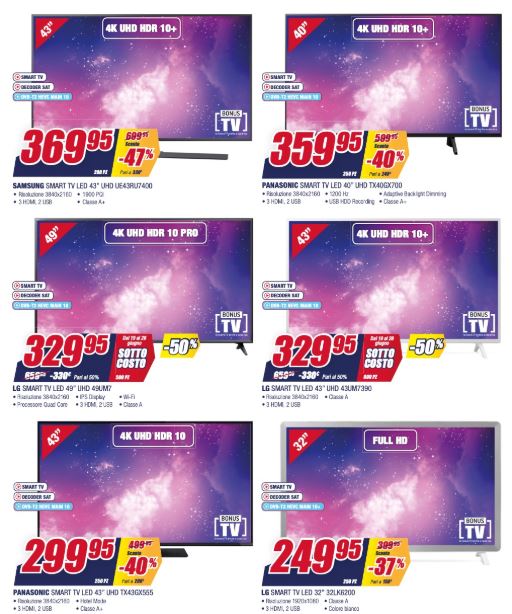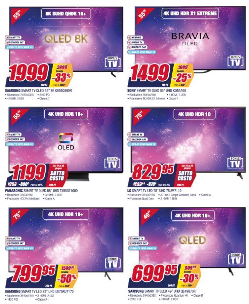 Comunque, sfogliate le immagini, e troverete probabilmente qualcosa che fa al caso vostro, specie se cercate smartphone, notebook, fotocamere e smart TV, come pure condizionatori o elettrodomestici di vario genere.