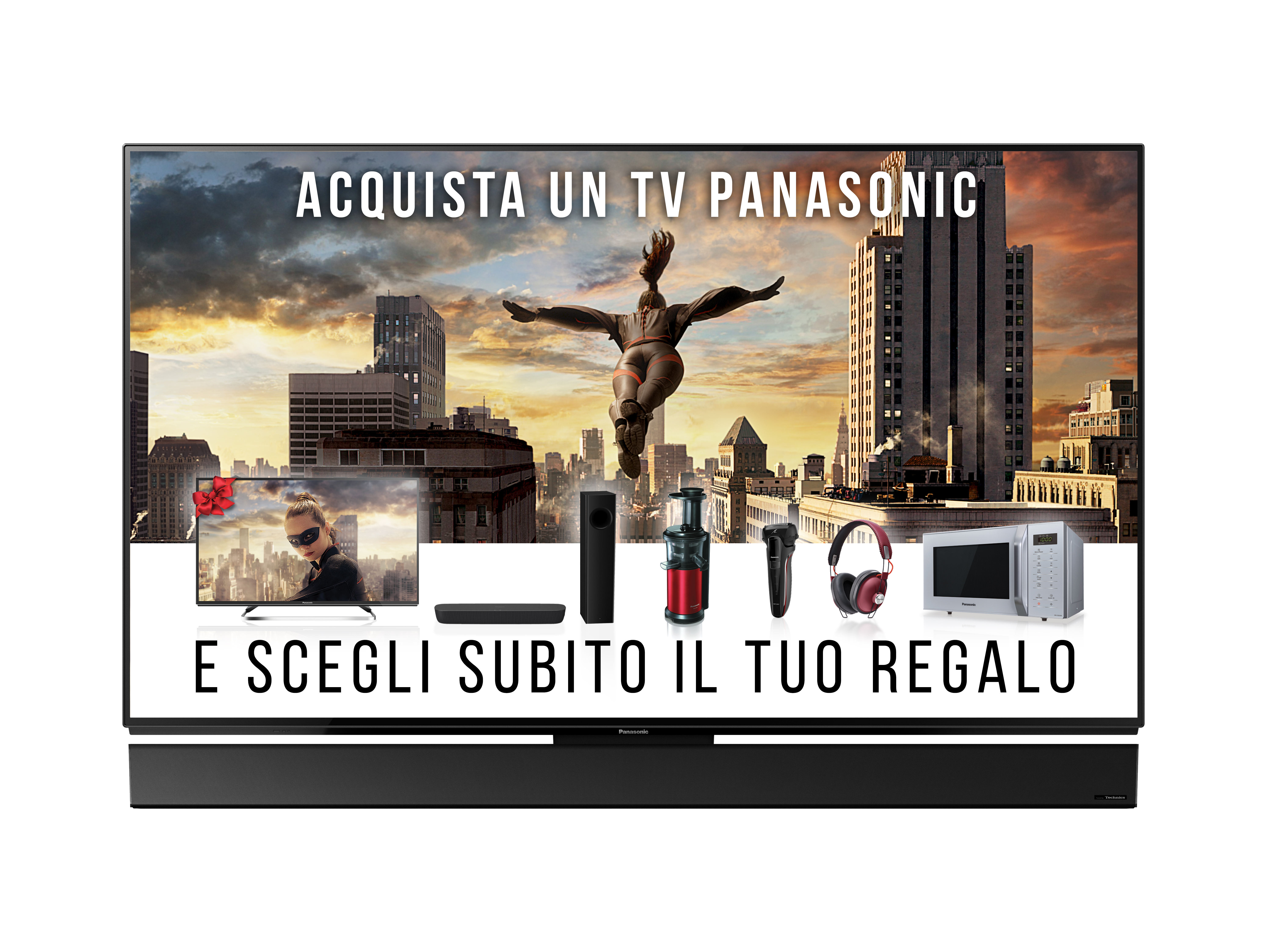 - con l’acquisto di un Panasonic TV OLED 4K 77EZ1000, 65/55FZ950 o 65/55FZ800, la clientela potrà selezionare un omaggio a scelta tra: uno Slow-Juicer L500, una Soundbar HTB250, un Forno Microonde K36H, un paio di Cuffie bluetooth HTX80, uno Shaver LL21 o, addirittura, un ulteriore TV da 40”, il 40FS503;