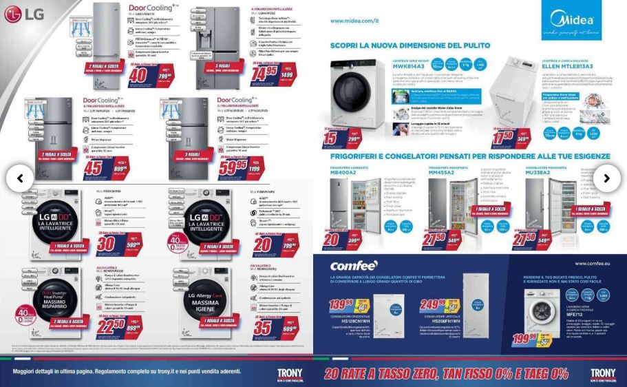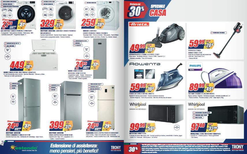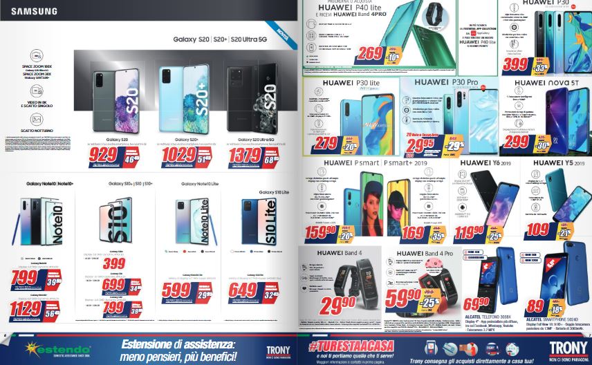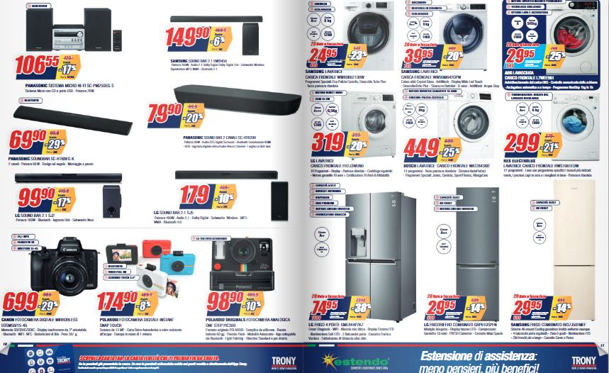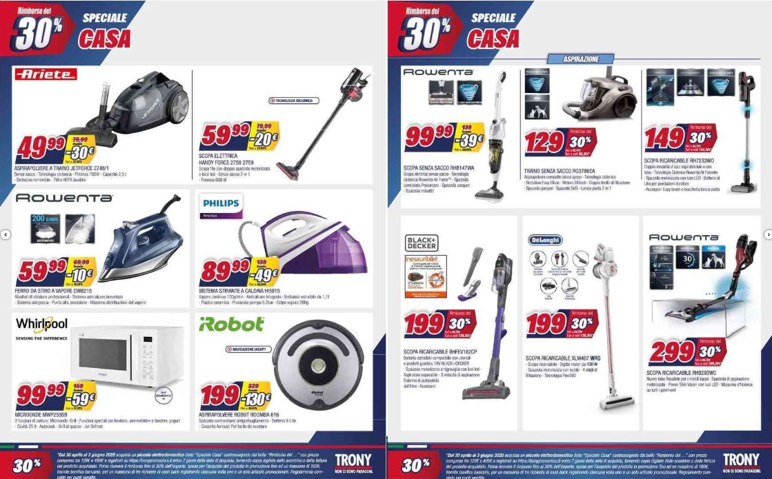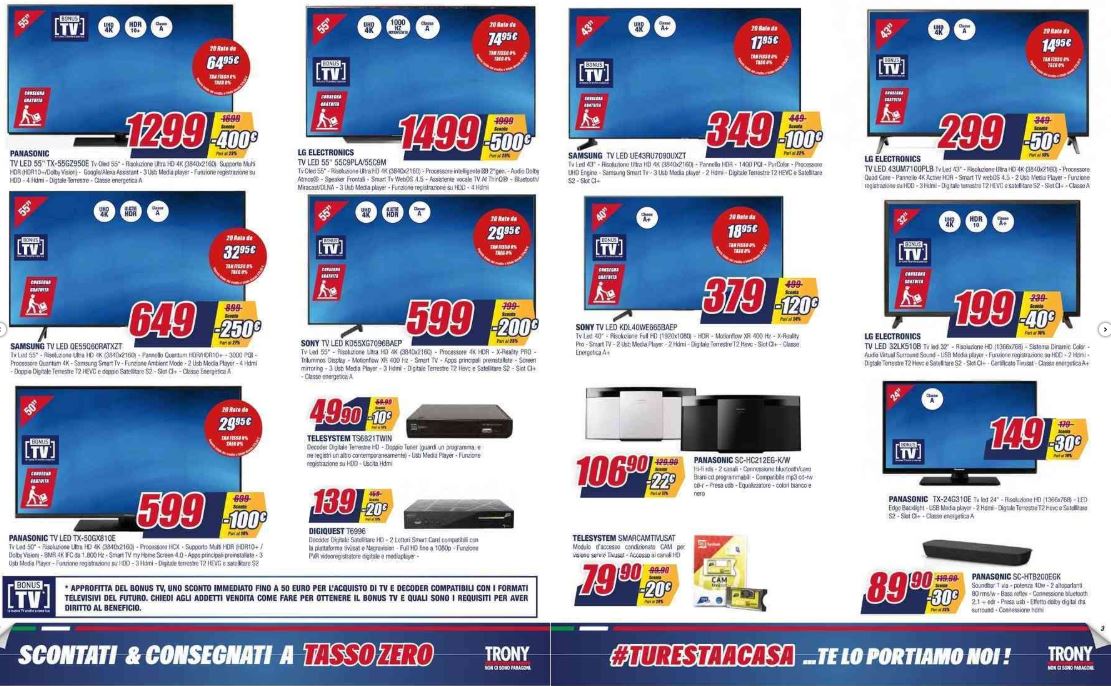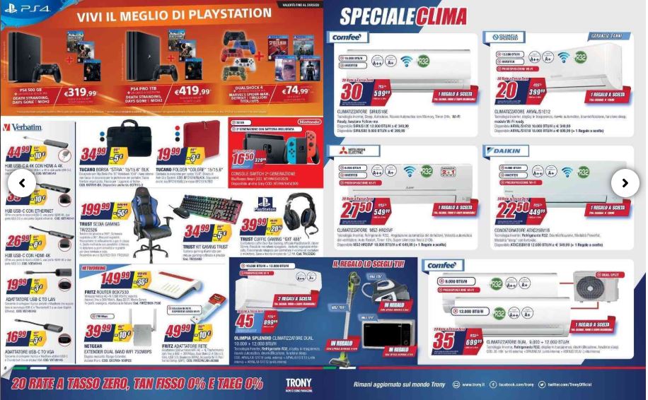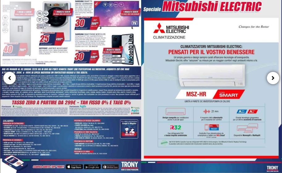 Partiamo dal volantino di Trony con la data di scadenza più vicina: “Trony c’è“. Si tratta di uno stampato valido nei punti vendita da oggi fino al 27 maggio 2020 in Campania e a Formia (LT), con i negozi specificati nell’ultima pagina che trovate nella galleria a seguire.