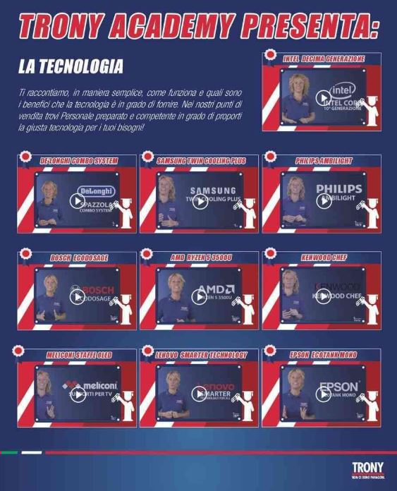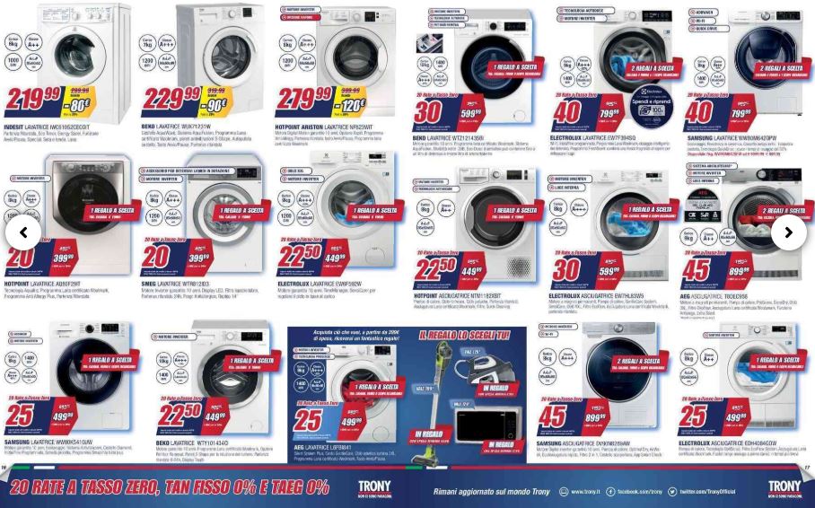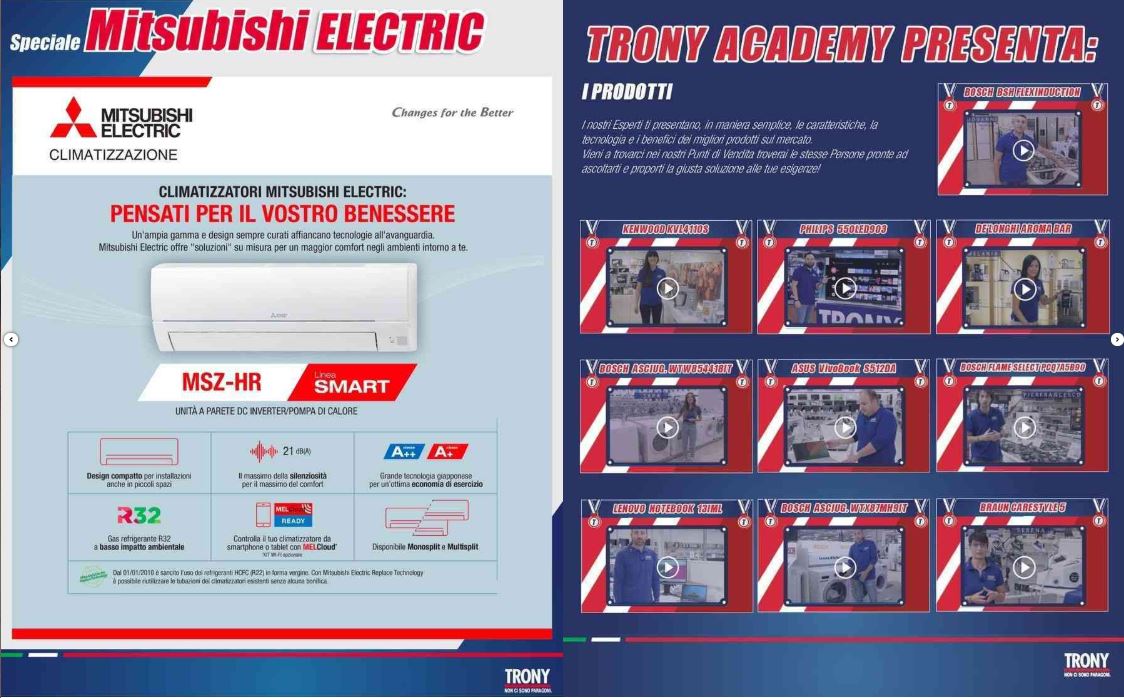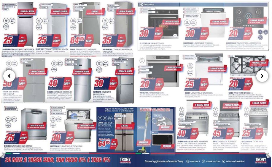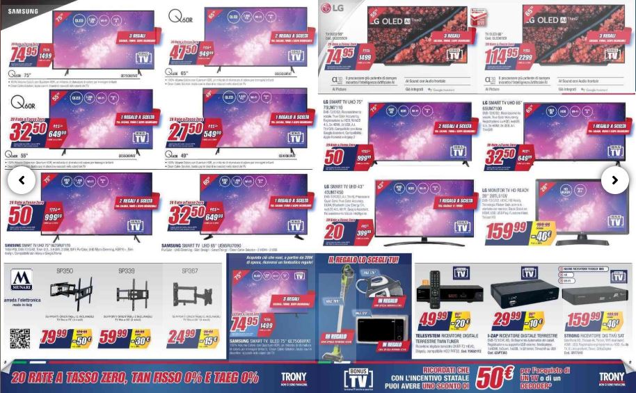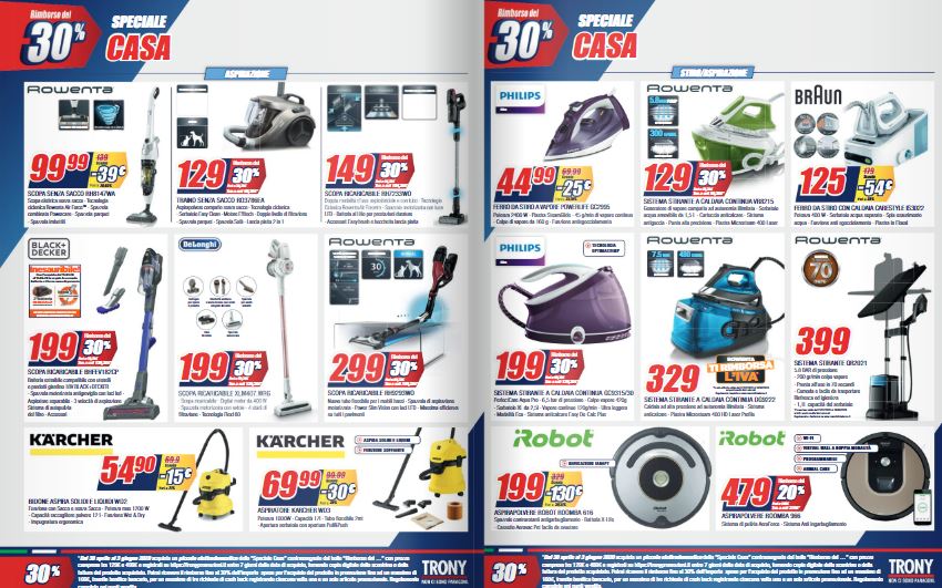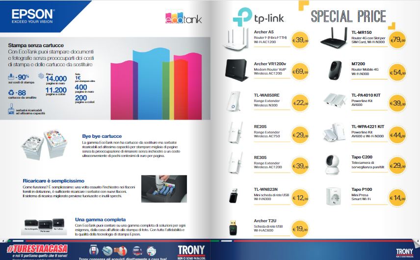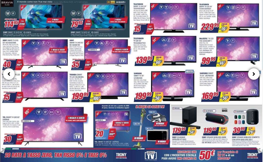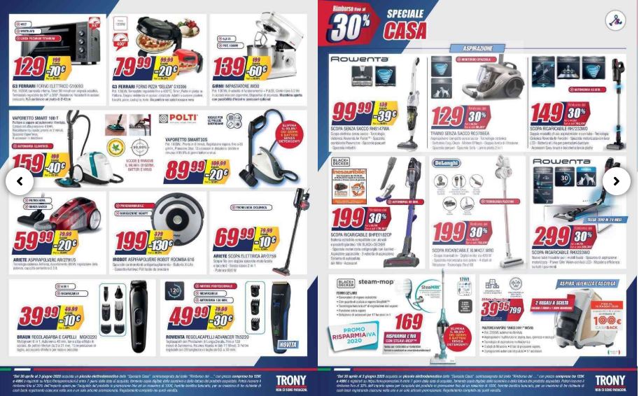 Partiamo dal volantino di Trony con la data di scadenza più vicina: “Trony c’è“. Si tratta di uno stampato valido nei punti vendita da oggi fino al 27 maggio 2020 in Campania e a Formia (LT), con i negozi specificati nell’ultima pagina che trovate nella galleria a seguire.