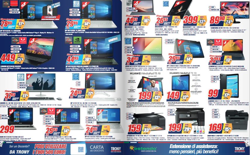 Alla coppia annunciata alcuni giorni fa, Trony rilancia con un tris di volantini, con una marea di offerte tech per tutti i gusti. “Scontati & Consegnati“, “Trony c’è” e “Il regalo lo scegli tu!” sono i nomi dei dépliant in questione, i dettagli li trovate invece nei paragrafi a seguire.