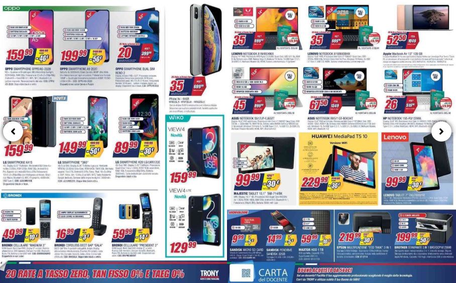 Passiamo a “Scontati & Consegnati“, il volantino di Trony riservato ai negozi del Veneto, valido fino al 30 maggio 2020. Tante offerte tech e tasso zero, sono questi i capisaldi del flyer in questione, che trovate in tutti i suoi dettagli nella galleria a seguire.