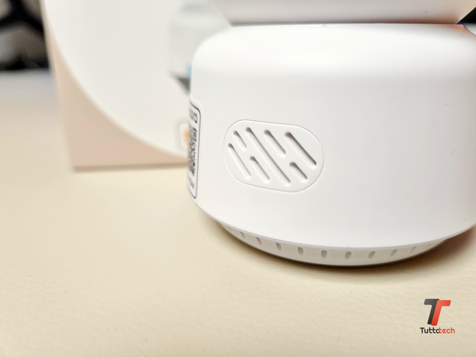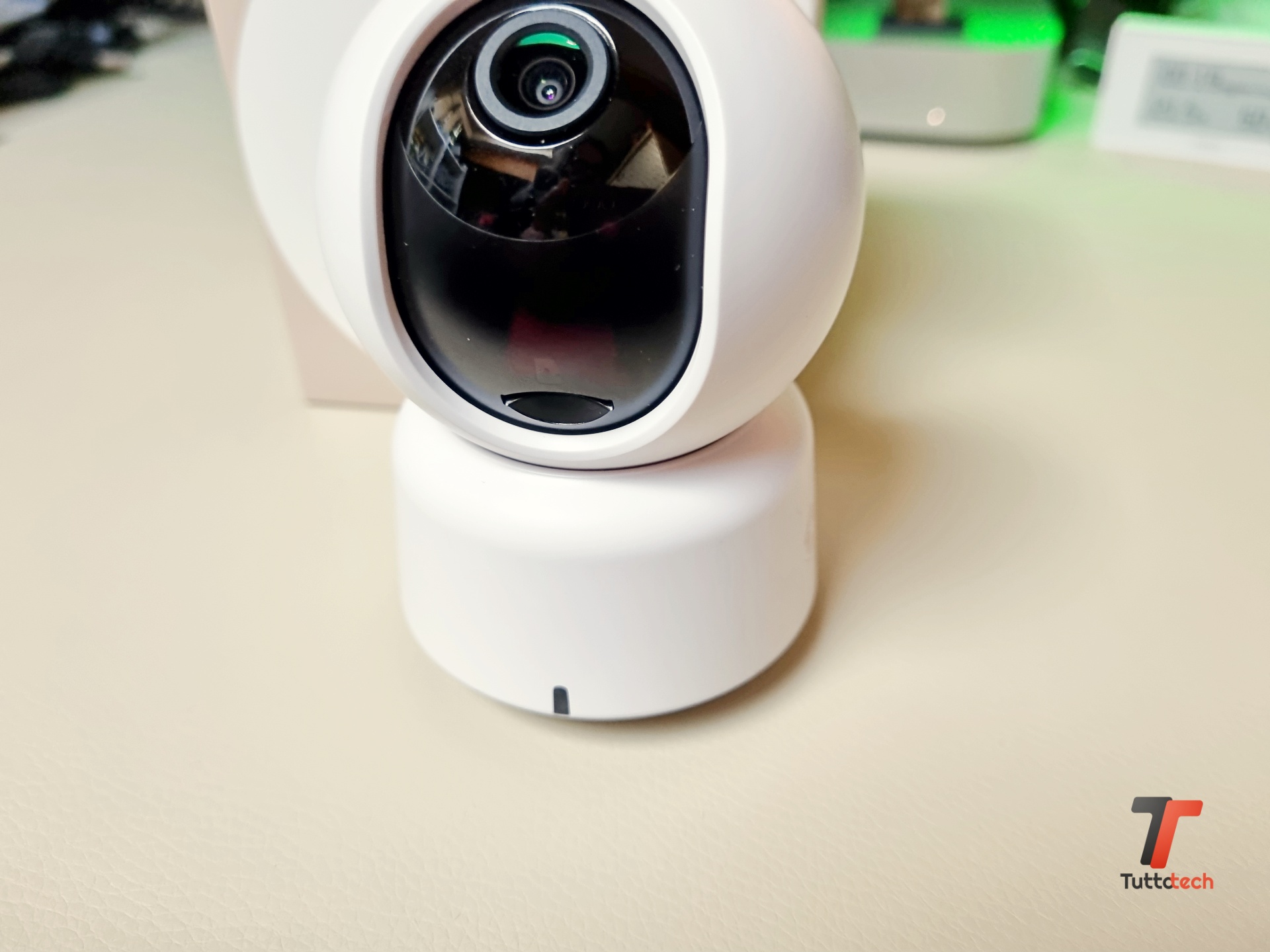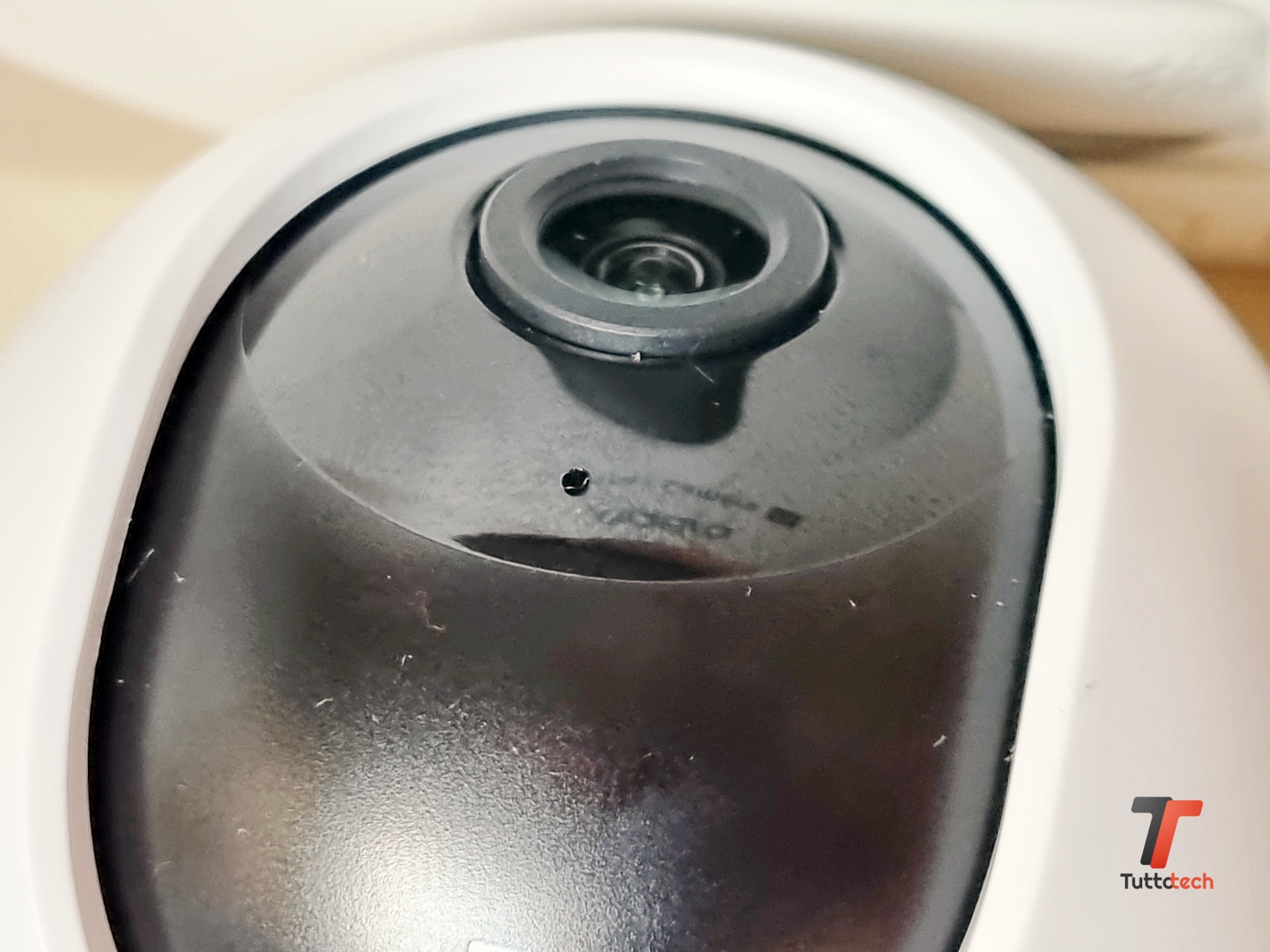 Il sensore utilizzato ha una risoluzione di 2304 x 1296 pixel, con un obiettivo dotato di apertura f/2.0, per ottenere immagini luminose e ben definite in ogni condizione, mentre per la visione notturna è presente un illuminatore a infrarossi a 940 nm che consente di vedere anche al buio in maniera decisamente dettagliata. Appena sotto al sensore trova posto il microfono, mentre sul lato sinistro della base è presenta la griglia dell’altoparlante.
