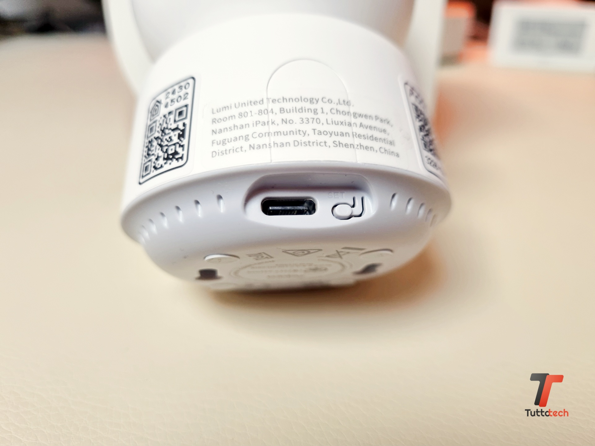 Si, questa telecamera offre la comunicazione a due vie, una funzione molto comoda per controllare bambini o anziani e dialogare con loro. Più un basso ancora, visibile solo quando la telecamera è puntata verso l’alto, è presente lo slot microSD, così da archiviare le immagini e i video in locale. È comunque possibile utilizzare un NAS presente in Rete o ricorrere al cloud di Aqara, così da poter visualizzare i video anche da remoto.