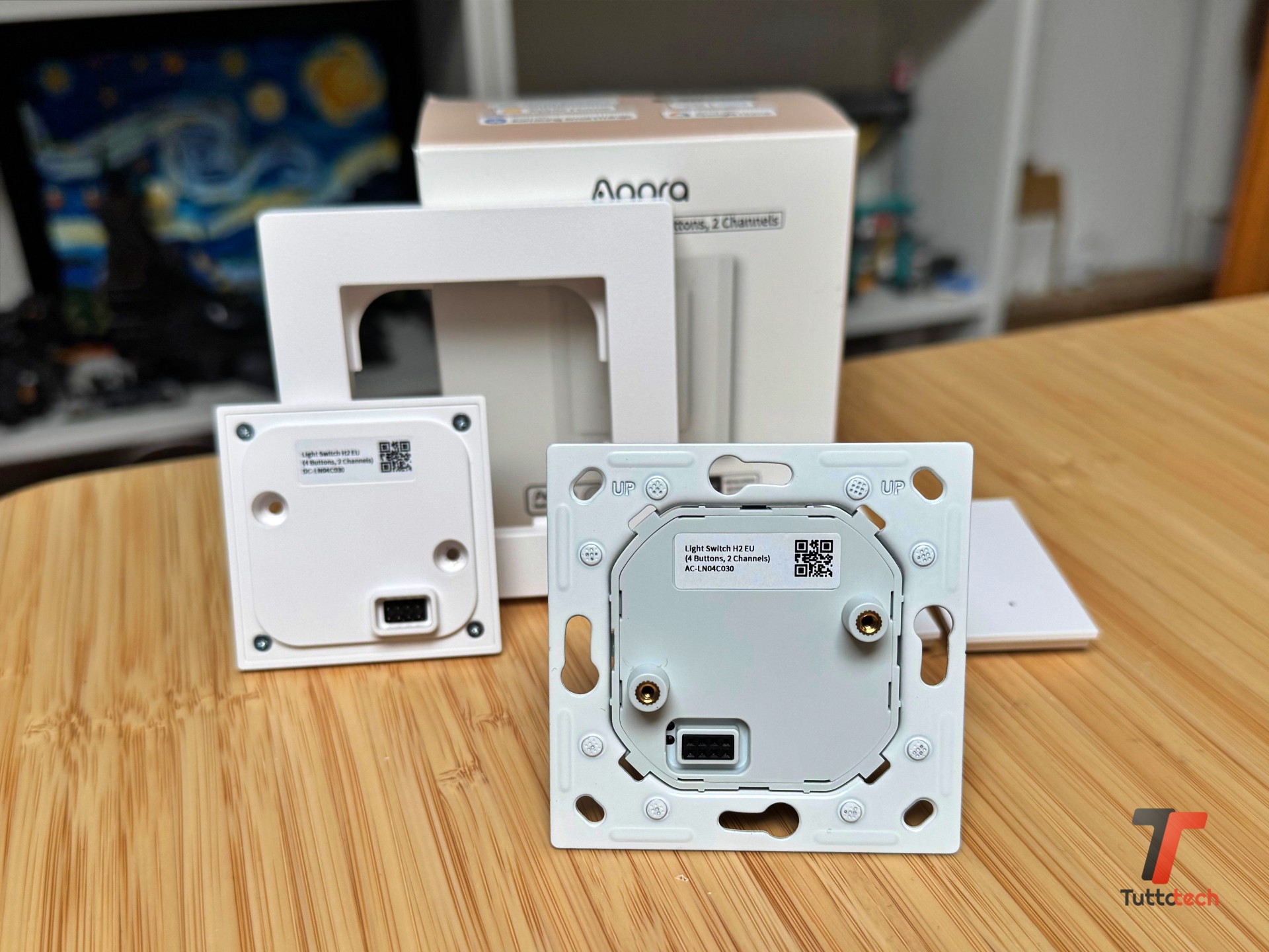 Ricordiamo che Aqara Light Switch H2 EU può controllare direttamente due luci, mentre in modalità wireless è possibile controllarne altre due. In alternativa è possibile utilizzare tutti e quattro i pulsanti per controllare altrettante luci via WiFi, senza alcun cablaggio. Va detto che se dovete controllare una luce Aqara è consigliabile utilizzare il protocollo Zigbee, collegare il cavo neutro e attivare le funzioni MARS, che permettono di usare l’interruttore fisico senza però andare a interrompere l’alimentazione, lasciando così inalterata la possibilità di utilizzare lo smartphone, o un applicazione di terze parti, per gestire l’accensione e lo spegnimento della luce/dispositivo. Vi basterà comunque qualche piccolo test per comprendere al meglio ogni aspetto della funzione MARS e trovare quella che meglio si adatta alle vostre necessità. Noi ad esempio abbiamo preferito utilizzare tutti gli interruttori in modalità wireless nella configurazione finale, vista la presenza di luci smart di diversi brand.