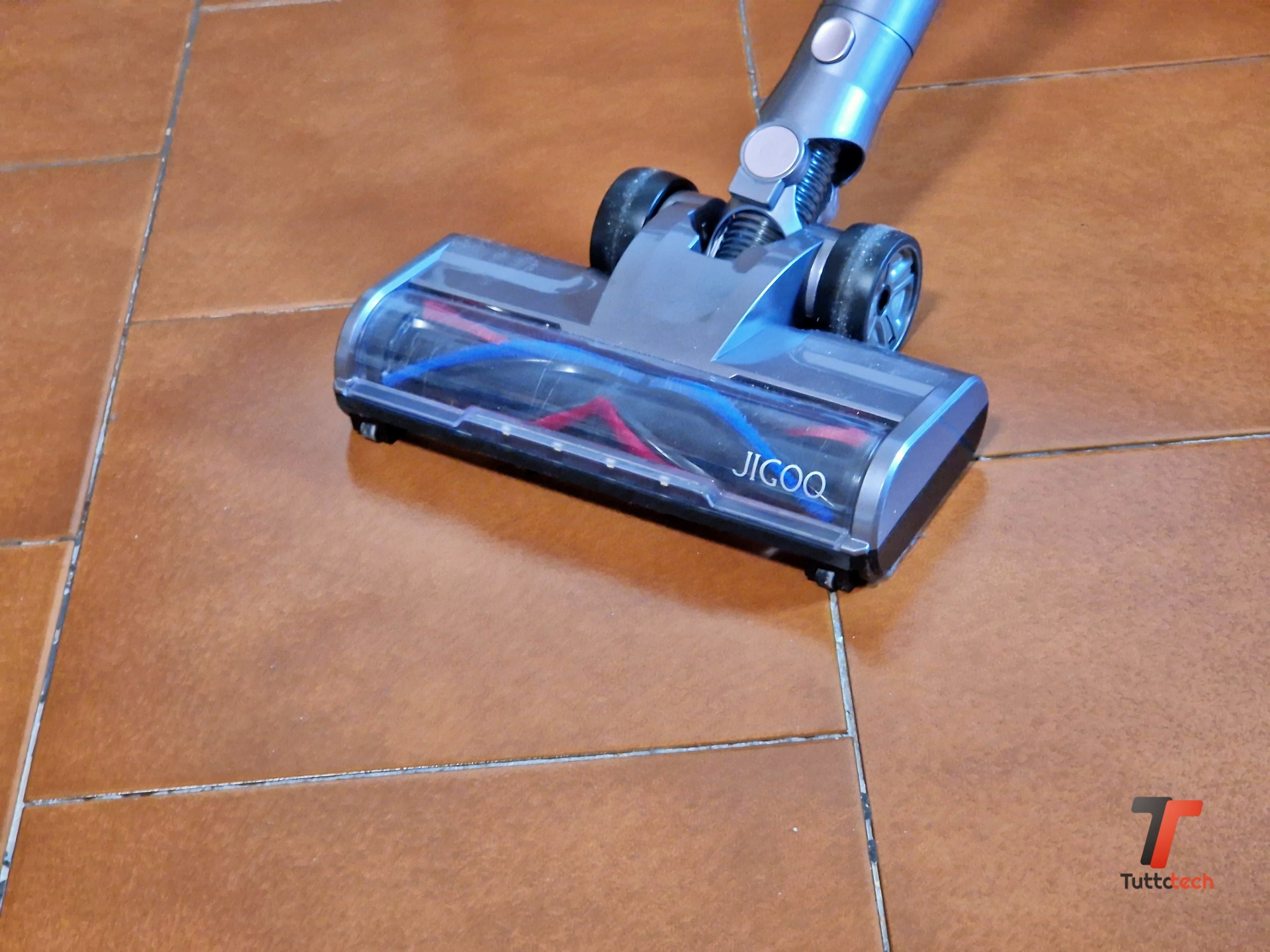 Partiamo dal più piccolo dei due modelli oggetto della nostra prova, JIGOO C300, dotato di un motore da 300 watt in grado di generare una ponza di aspirazione di 30.000 Pa. Nonostante un prezzo molto contenuto, si tratta di un aspirapolvere di tutto rispetto, a cui manca solo, a nostro avviso, una piccola spazzola motorizzata per la pulizia di cuscini e materassi.