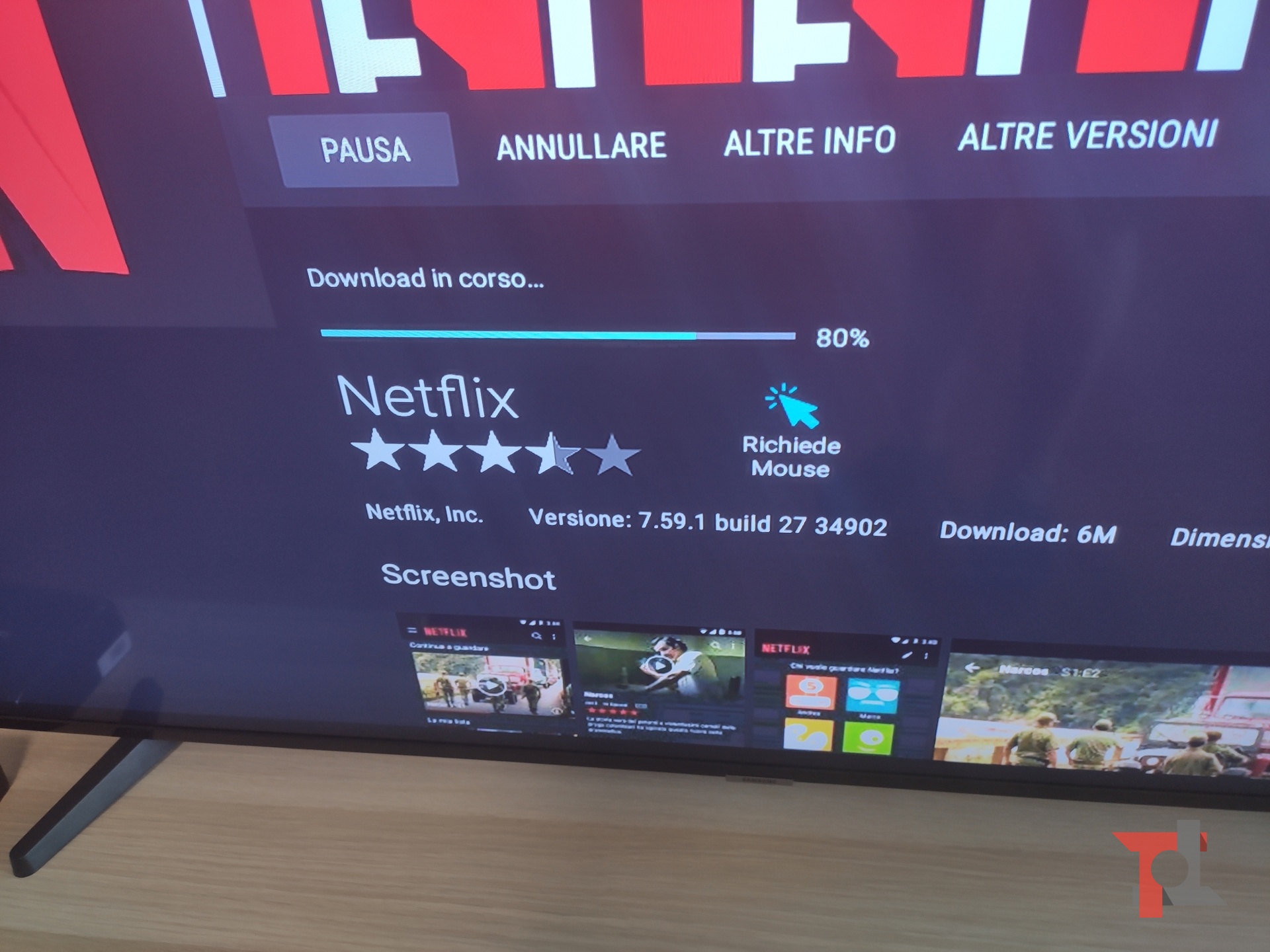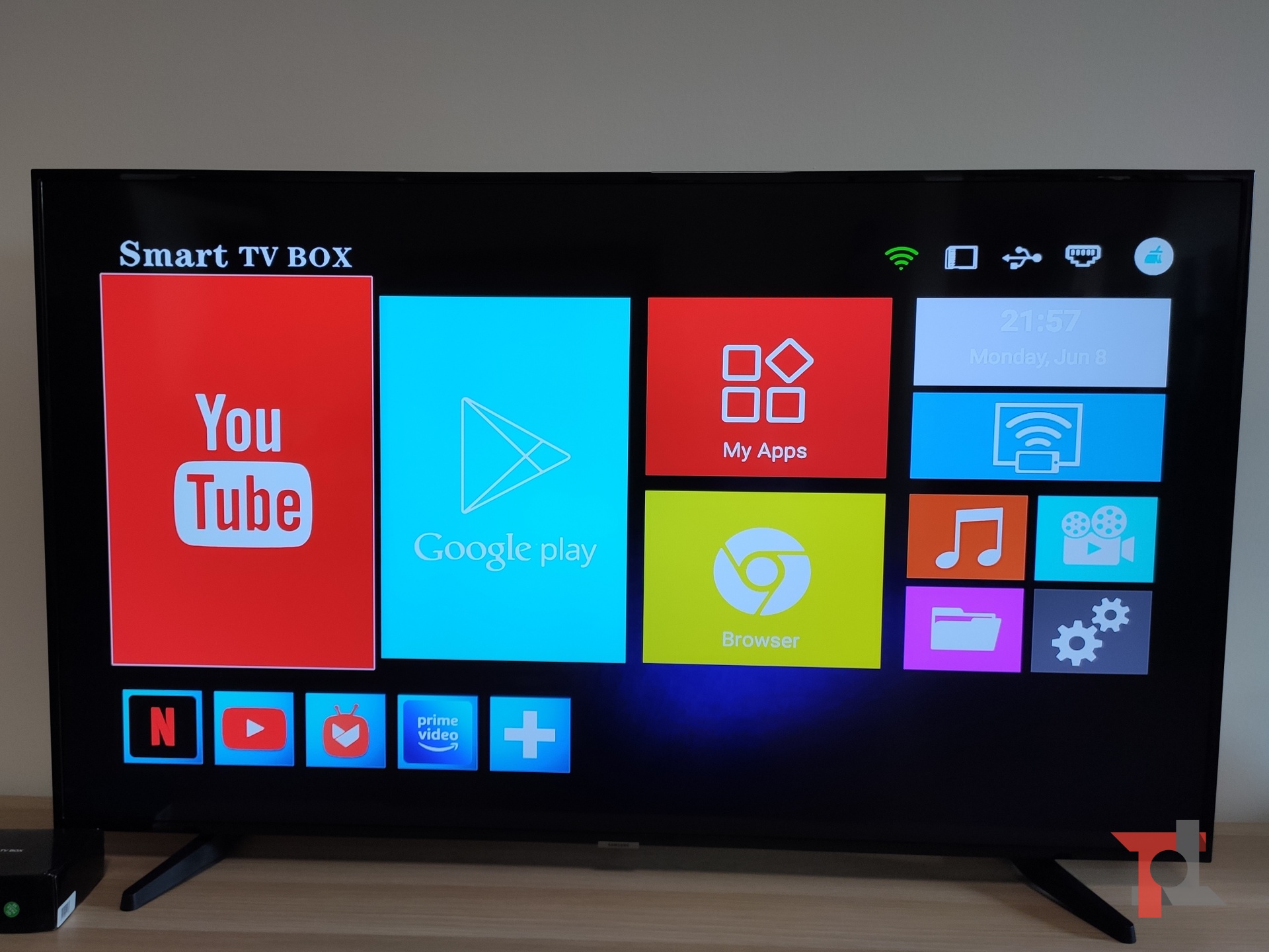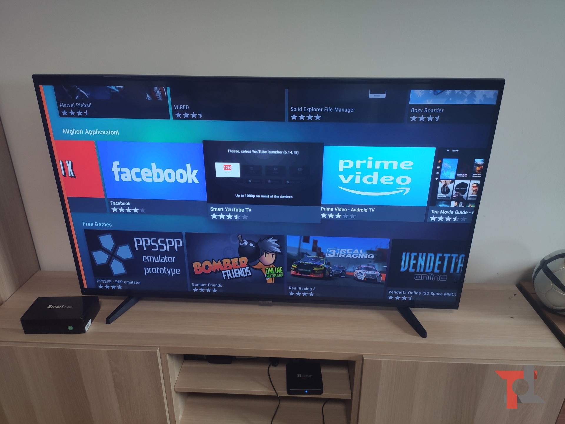 Il fatto che Android sia in versione standard, in sostanza quella presente su smartphone e tablet, è un grosso problema, soprattutto perché l’interfaccia delle applicazioni non è ottimizzata per le TV. Abbiamo provato Netflix e Amazon Prime Video, mentre per altre piattaforme è non stato possibile installare la relativa applicazione.