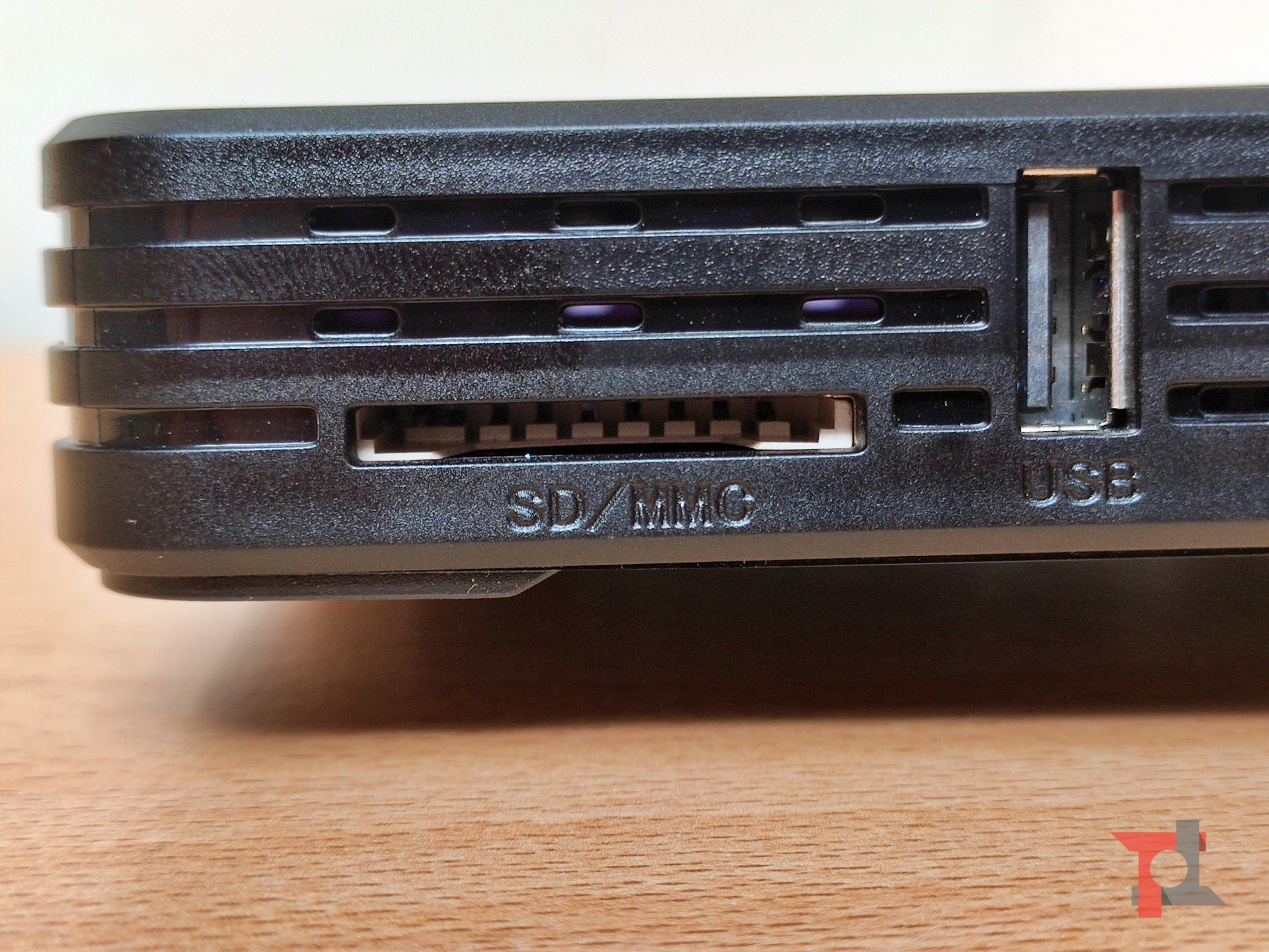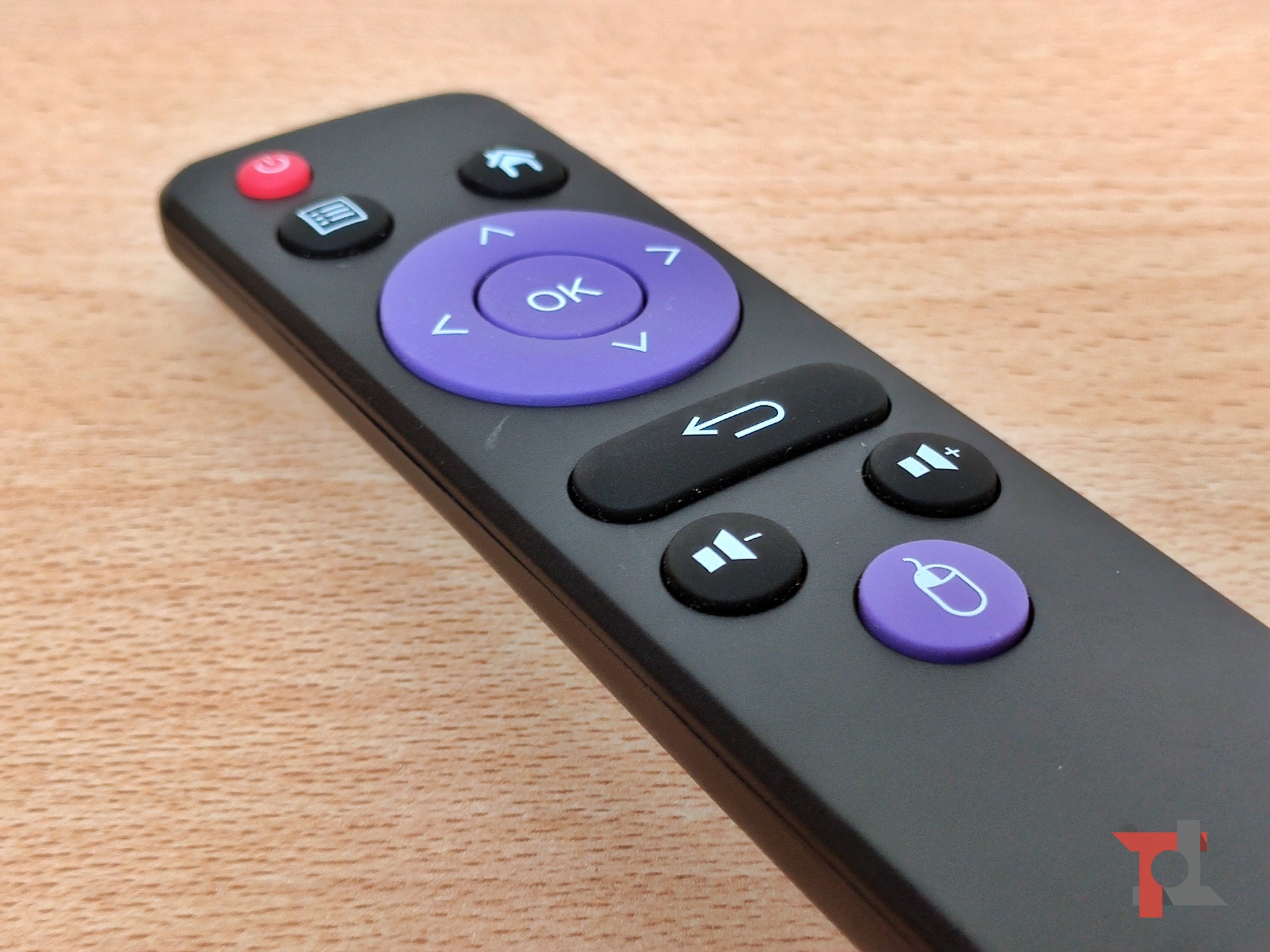 Troviamo il WiFi a 2,4 GHz, connettore RJ45 per la connessione cablata alla rete, 1 porta USB 3.0 e 3 porte USB 3.0. In dotazione abbiamo un telecomando per il controllo delle funzioni, anche se le batterie AAA non sono incluse e vanno acquistate a parte.