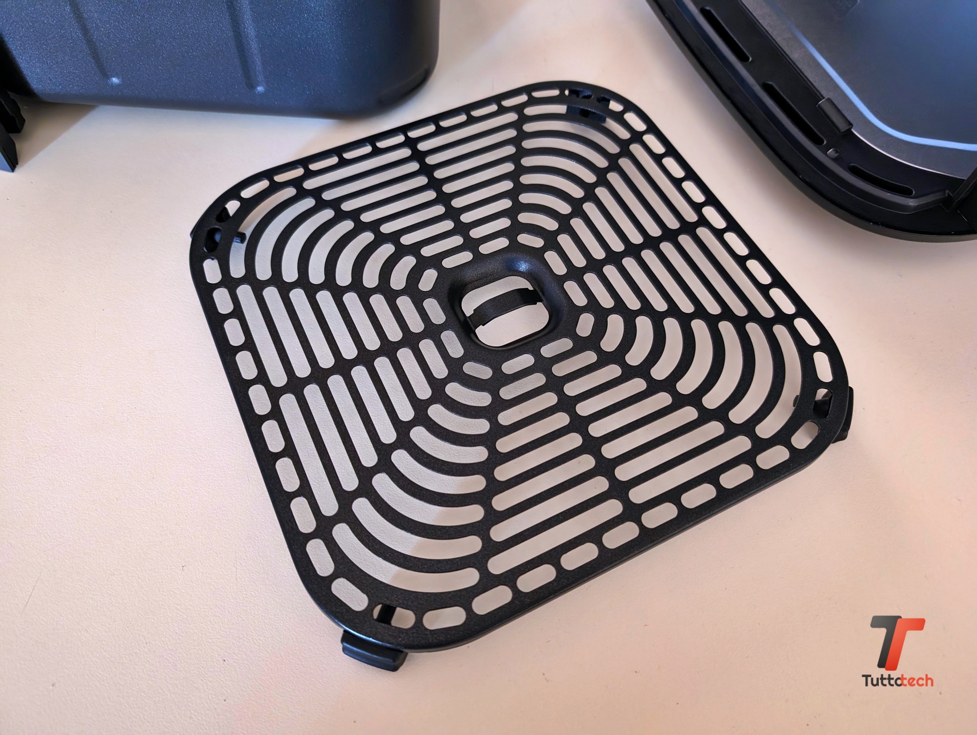 Se cucinare con COSORI Turbo Blaze è un vero piacere, anche per il palato, com’è la sua manutenzione? Dimenticatevi griglie, supporti, materiali delicati da lavare a mano con il timore di rovinarli. Qui avete solo il cestello e il piatto da posizionare sul fondo, entrambi realizzati con materiale antiaderente e lavabili anche in lavastoviglie, come suggerisce lo stesso produttore.