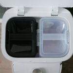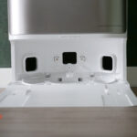 Nella parte frontale della stazione sono invece presenti il sacchetto per la raccolta dello sporco aspirato dal robottino, sufficiente per contenere lo sporco di un paio di mesi, e il vano per inserire il serbatoio con la soluzione detergente (fornito nella confezione di vendita). La soluzione viene aggiunta in maniera automatica quando viene riempito il serbatoio con acqua pulita, così da migliorare sensibilmente la qualità della pulizia.
