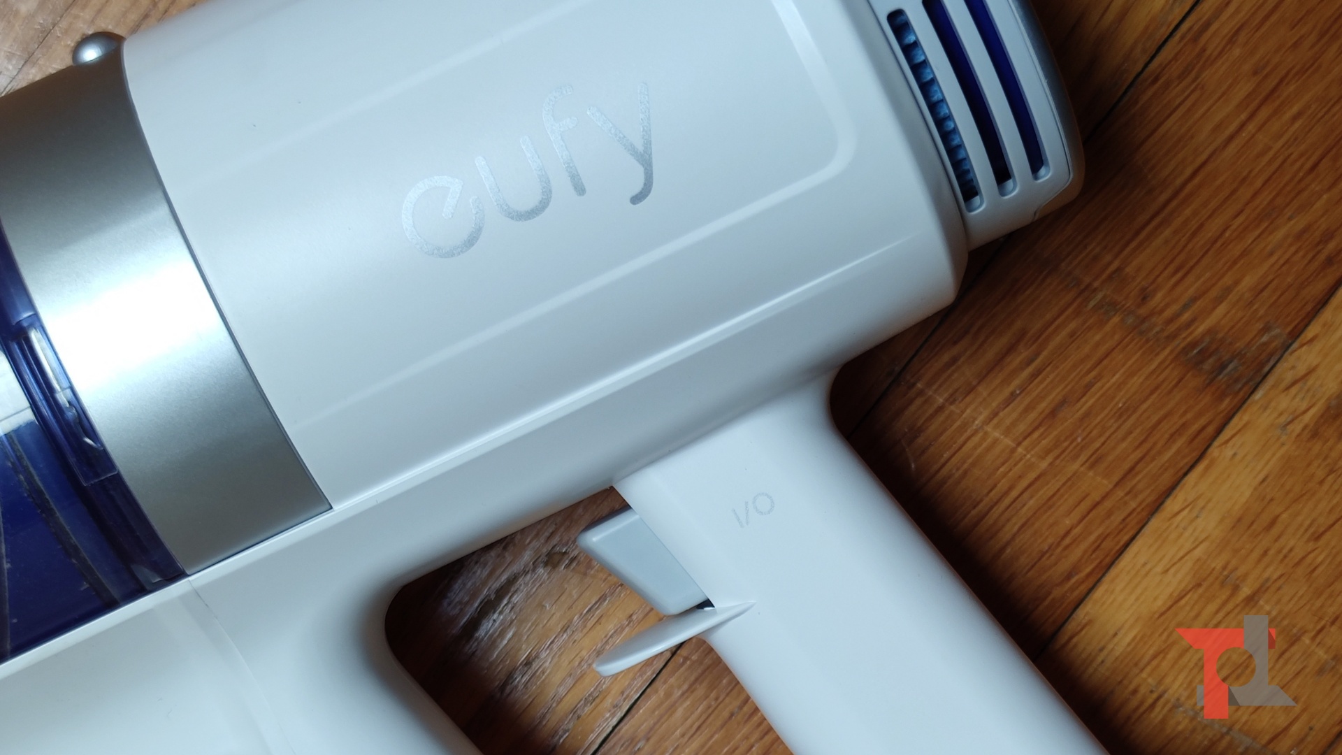 E qui si nota il secondo difetto, niente di sconvolgente ma alla lunga può risultare fastidioso. L’aspirapolvere si accende sempre alla potenza media, senza ricordare quella che stavate utilizzando prima di rilasciare il grilletto. E se stavate utilizzando la potenza massima o quella minima sarete costretti a utilizzare il pulsante posto nella parte superiore, non raggiungibile con la stessa mano che preme il grilletto. Scomodo e poco intuitivo quindi, bastava posizionare un selettore vicino al grilletto, azionabile magari con il pollice e tutto sarebbe risultato più comodo.
