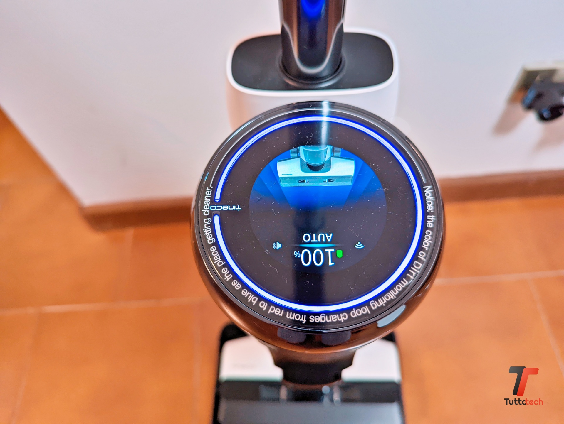 E non vi ho ancora parlato del nuovo schermo, davvero stupendo. Dite addio alle poche informazioni mostrate sullo schermo dei predecessori: Tineco ha montato uno schermo LCD da 2,1 pollici che mostra in maniera molto chiara i dettagli sul funzionamento, l’autonomia residua ed eventuali problemi che dovessero manifestarsi. Senza dimenticare il LED circolare che cambia colore, da blu a rosso, a seconda della potenza impegnata, per aiutarvi subito a capire quando il pavimento è particolarmente sporco.