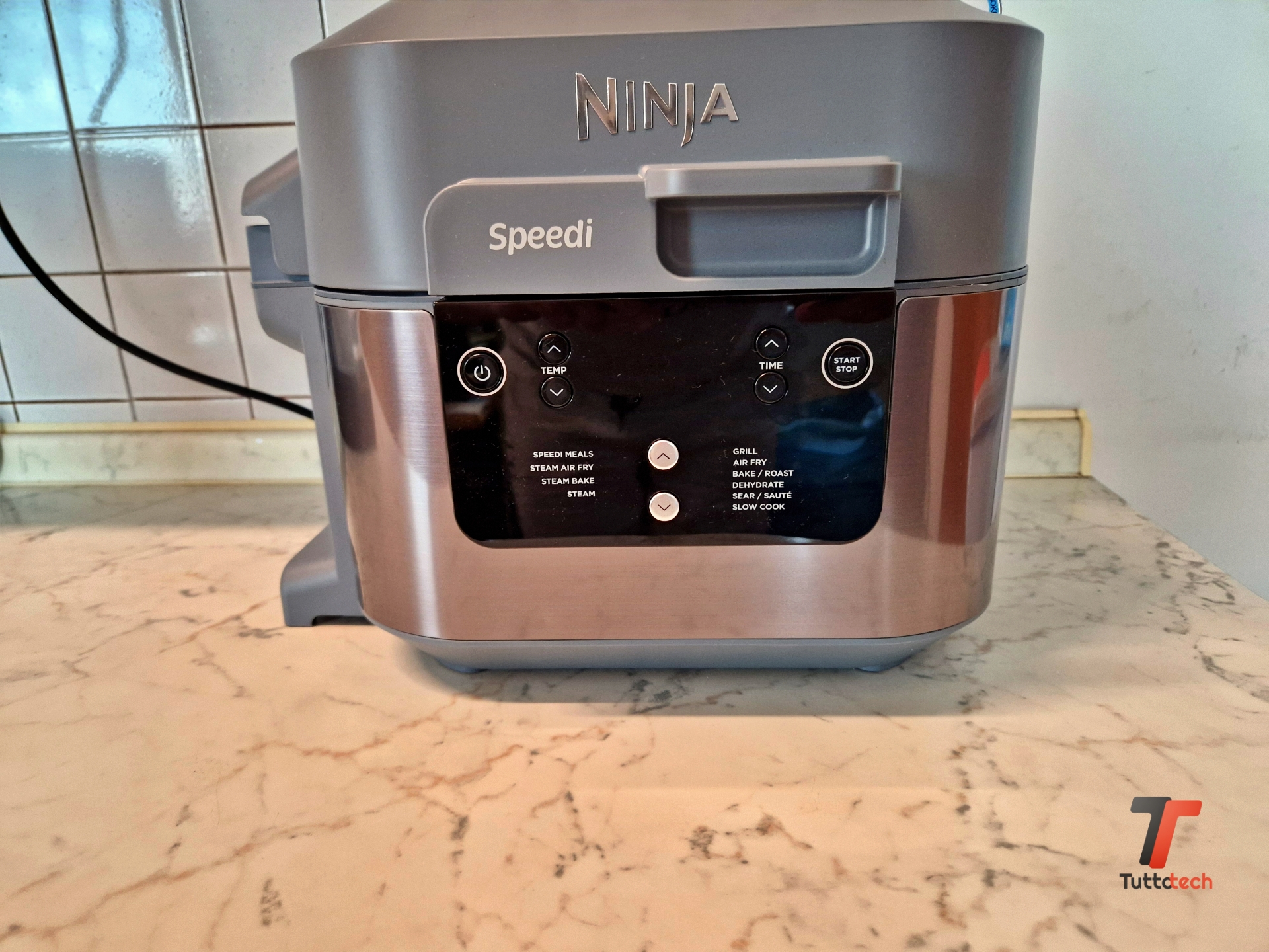 Chiamare semplicemente “friggitrice ad aria” questo Ninja Speedi sarebbe decisamente riduttivo, visto che in realtà siamo di fronte a un vero e proprio sistema di cottura, in grado di utilizzare anche la cottura a vapore per rendere più morbide le pietanze. Quando la funzione viene combinata con la frittura ad aria il risultato è semplicemente strepitoso, ma ve ne parleremo meglio tra poco.
