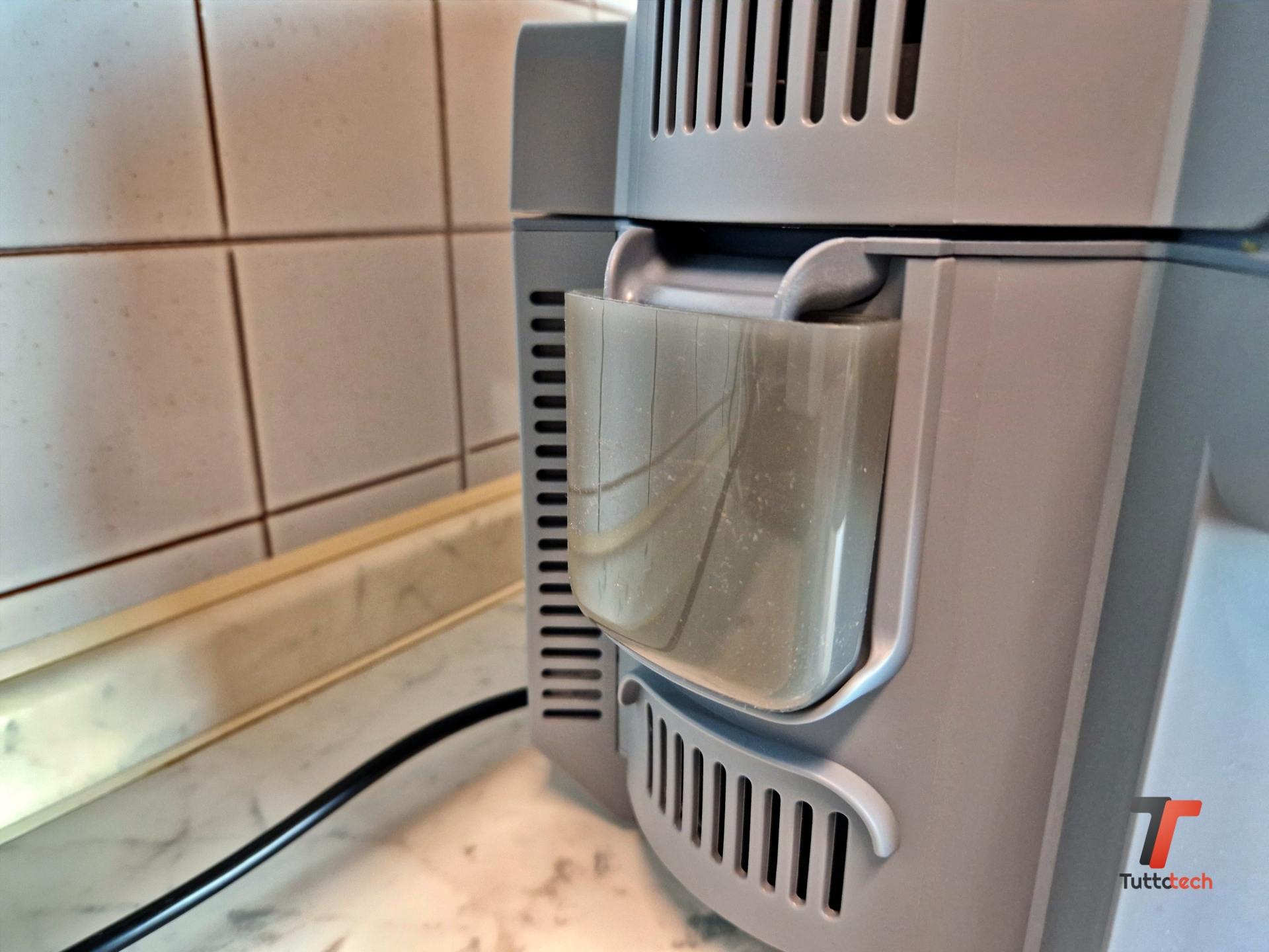 La pulizia è decisamente semplice, il solo punto delicato è la ventola posta sul coperchio. Basta comunque un panno umido (meglio evitare detersivi per non ritrovarseli in seguito nei cibi) per rimuovere i pochi residui che si formano, anche utilizzando la frittura ad aria. Abbiamo provato con patatine fritte e la parte superiore è risultata completamente pulita, senza schizzi di olio e senza alcun tipo di sporco.