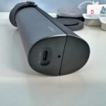 Molto curata anche la custodia da viaggio, realizzata in plastica ma con una finitura che la rende molto simile alla pelle. Le due metà, tenute insieme da una cerniera, hanno una leggera attrazione magnetica e un laccio in silicone morbido permette di avere una solida chiusura senza rischiare che la custodia si apra durante il trasporto. Sul fondo è presente il connettore USB-C che va ad alimentare il caricabatterie wireless posizionato all’interno, così da poterlo ricaricare anche quando siete in viaggio con l’alimentatore che usate solitamente per lo smartphone.