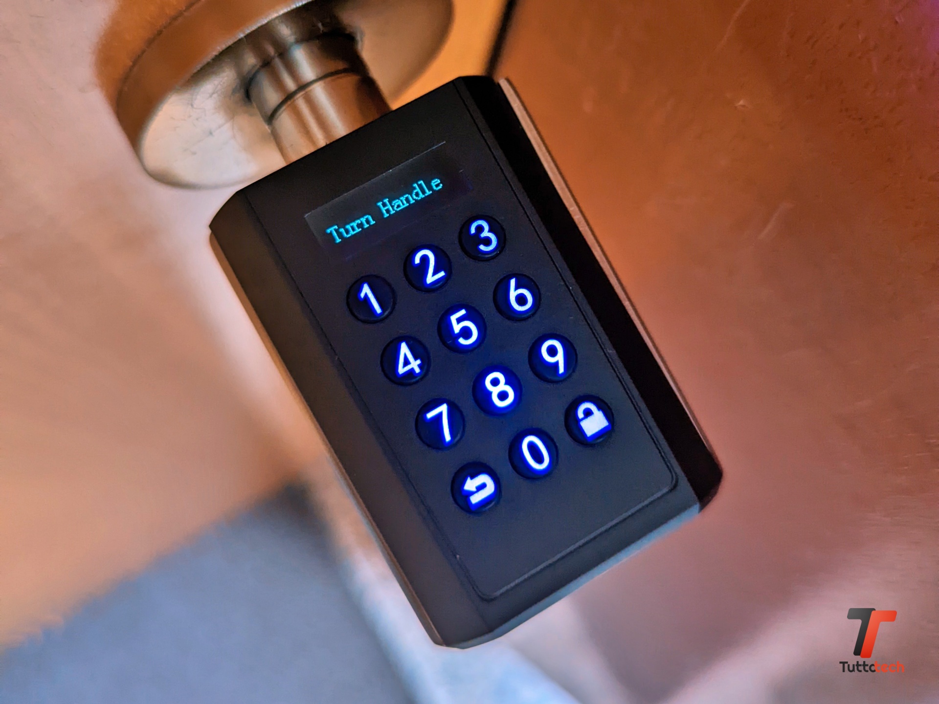 Oltre alla possibilità di sbloccare la serratura con lo smartphone, efficace ma decisamente scomoda, è possibile utilizzare un codice di 6 cifre o un tag NFC. Il primo è sicuramente comodo, a meno che non siate smemorati, il secondo è indubbiamente indicato anche per le persone anziane o i bambini. Peccato solo che per inserire il codice o utilizzare il tag NFC sia necessario premere un tasto per “risvegliare” la serratura.