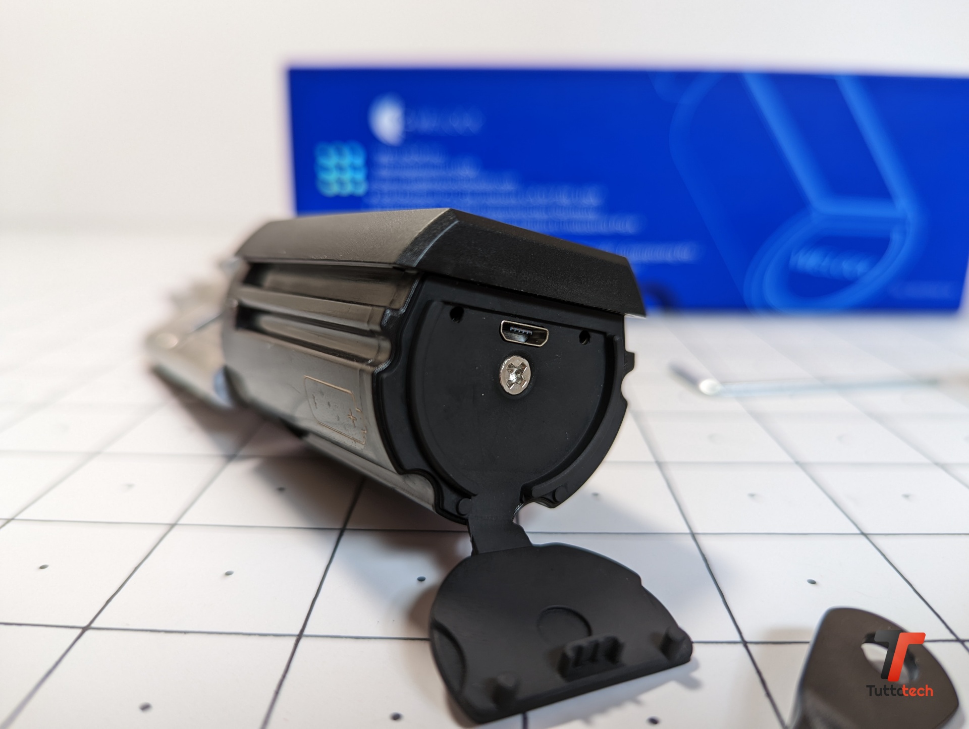 Una volta installata la serratura, ma potete farlo anche prima per comodità, è necessario usare la chiave a brugola per rimuovere la copertura della maniglia esterna e inserire le tre batterie mini stilo necessarie al suo funzionamento. Da notare che è presente anche un connettore microUSB da utilizzare nel caso in cui le batterie siano completamente scariche per riuscire ad aprire la porta. Questo ovviamente richiede un cavetto e un power bank, che dovrete quindi ricordare di avere sempre a disposizione, magari in auto o in garage (se lo avete all’esterno dell’abitazione).