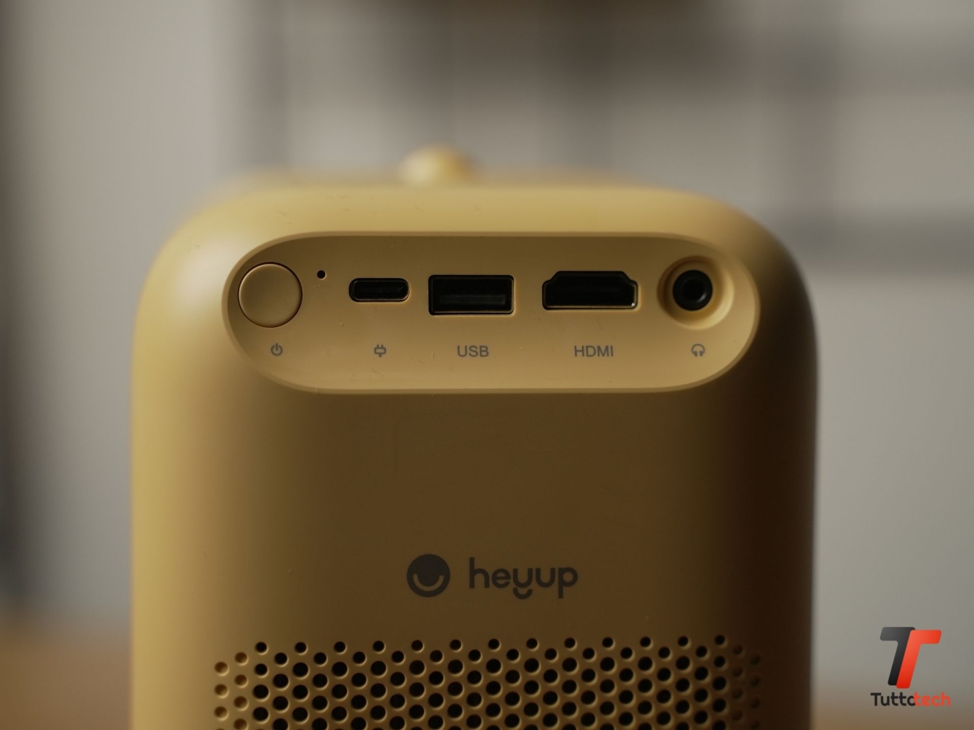 Come abbiamo detto uno dei suoi punti di forza più grandi sono le dimensioni, che per un proiettore portatile possono davvero fare la differenza. Heyup Boxe misura infatti 115.1 x 134.1 x 175 mm per un peso di soli 1250 grammi. Se ci pensiamo è stato fatto davvero un ottimo lavoro dall’azienda che è riuscita a dotarlo di una batteria da 7800 mAh, oltre ad una serie completa di porte per il collegamento di dispositivi esterni o sorgenti video.