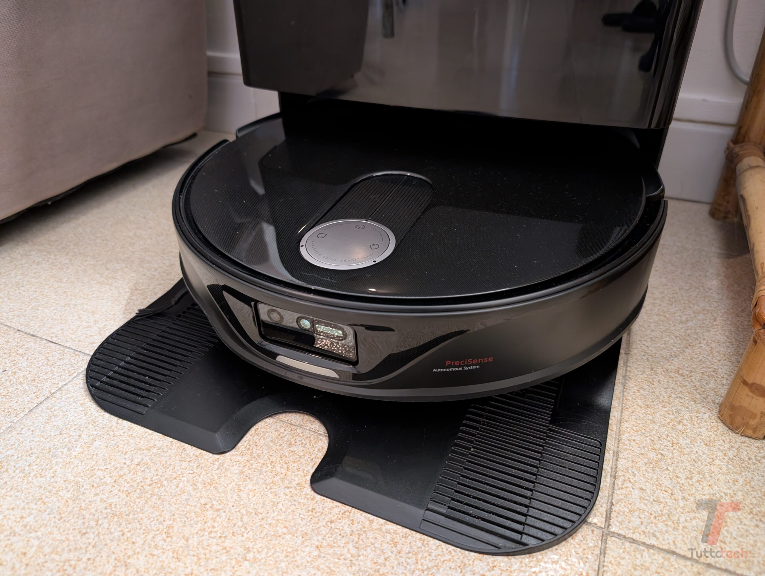 Lo stesso discorso, seppur con un appunto, è da fare per quanto riguarda l’aspirazione. Roborock Qrevo Slim aspira in modo profondo ed efficace così come lo fa Roborock Qrevo Master e lo fa lungo i bordi dei mobili, negli angoli con la sua spazzola laterale estendibile e lungo i battiscopa. Fisicamente e a livello di dimensioni i due non hanno differenze e quindi lavorano nel medesimo modo, fatta eccezione per un paio di cosette: la prima riguarda i 1000 Pascal in più in aspirazione e l’assenza, così come per il lavaggio, della torretta con il laser, che lo rende, come abbiamo visto, più basso di un paio di centimetri.