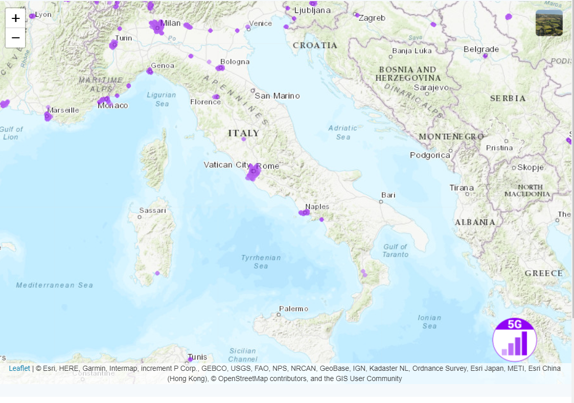 Di seguito trovate la copertura 5G Italia mappa, ottenuta con i dati dell’app nPerf, condotta in condizioni reali, direttamente sul campo.
