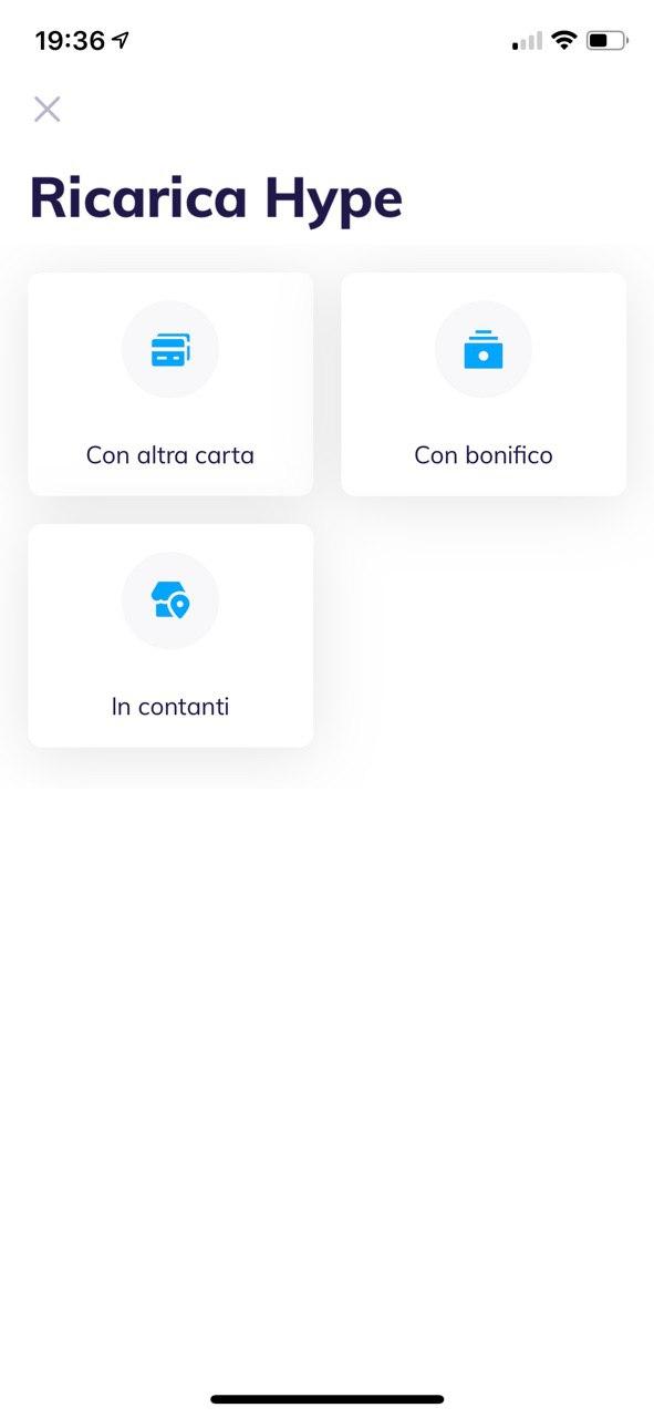 Spesso la domanda più gettonata è: come effettuare una ricarica con Hype? Possiamo ricaricare la carta con tre modalità differenti: in contanti, tramite bonifico bancario oppure con un’altra carta, sia prepagata che di debito/credito.