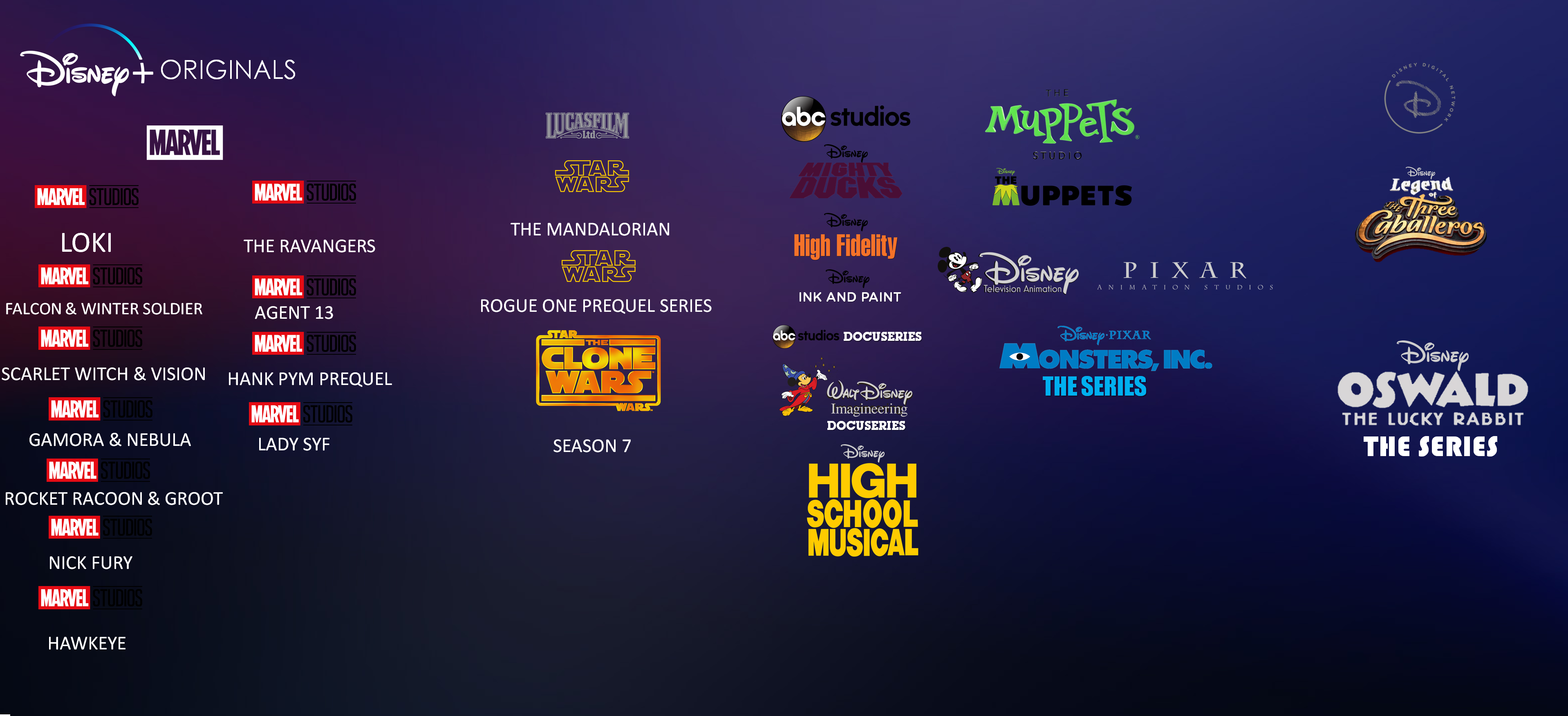 Cosa guadare su Disney plus? Disney+ mette a disposizione contenuti provenienti da diverse case cinematografiche acquisti nel tempo da Disney. In particolare, è possibile ad esempio accedere a contenuti prodotti da Disney, Pixar, Marvel, Luscafilm (Star Wars) e National Geographic.