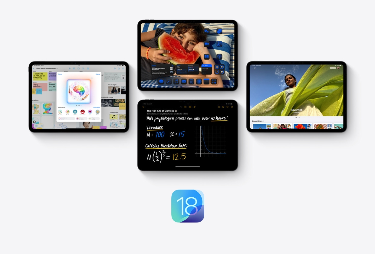 iPadOS 18 è stata rilasciata in forma stabile il 16 settembre 2024. Non si tratta di una vera rivoluzione dell’esperienza utente anche se, come per iPhone e Mac, Apple ha implementato anche sugli iPad compatibili le funzioni di intelligenza artificiale di Apple Intelligence, con l’integrazione anche di ChatGPT, novità per le quali è stato necessario pazientare per la disponibilità in Italia, funzioni disponibili in lingua italiana dal 31 marzo 2025 con il rilascio di iPadOS 18.4. AI a parte, in generale, il colosso di Cupertino ha migliorato con iPadOS 18 l’esperienza utente sugli iPad, introducendo altre funzionalità, come l’app Calcolatrice, una nuova barra dei pannelli e migliorie alle app Foto, Messaggi, Safari e Note, oltre a nuove opzioni di personalizzazione, che permettono di personalizzare la schermata Home, le icone e il Centro di Controllo.