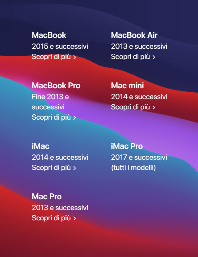 Tutti i Mac compatibili con macOS 11 Big Sur