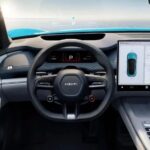 Dentro c’è spazio per 5 persone e abbastanza tecnologia anche per i più nerd. Il design degli interni è minimale e moderno, con sedili sportivi ventilati e riscaldati, un volante a D a tre razze e una plancia in cui abbondano elementi morbidi e tondeggianti. Al centro, ma distaccato, c’è un ampio schermo da 16,1″ con risoluzione 3K in 16:10 con dietro un Head-up Display da 56″ che copre buona parte del parabrezza in lunghezza, utile per mostrare diverse informazioni durante la guida. Per il conducente, c’è anche un quadro strumenti digitale da 7,1 pollici, mentre chi siede dietro può usare i due schermi/tablet appesi alla sezione posteriore dei poggiatesta anteriori.