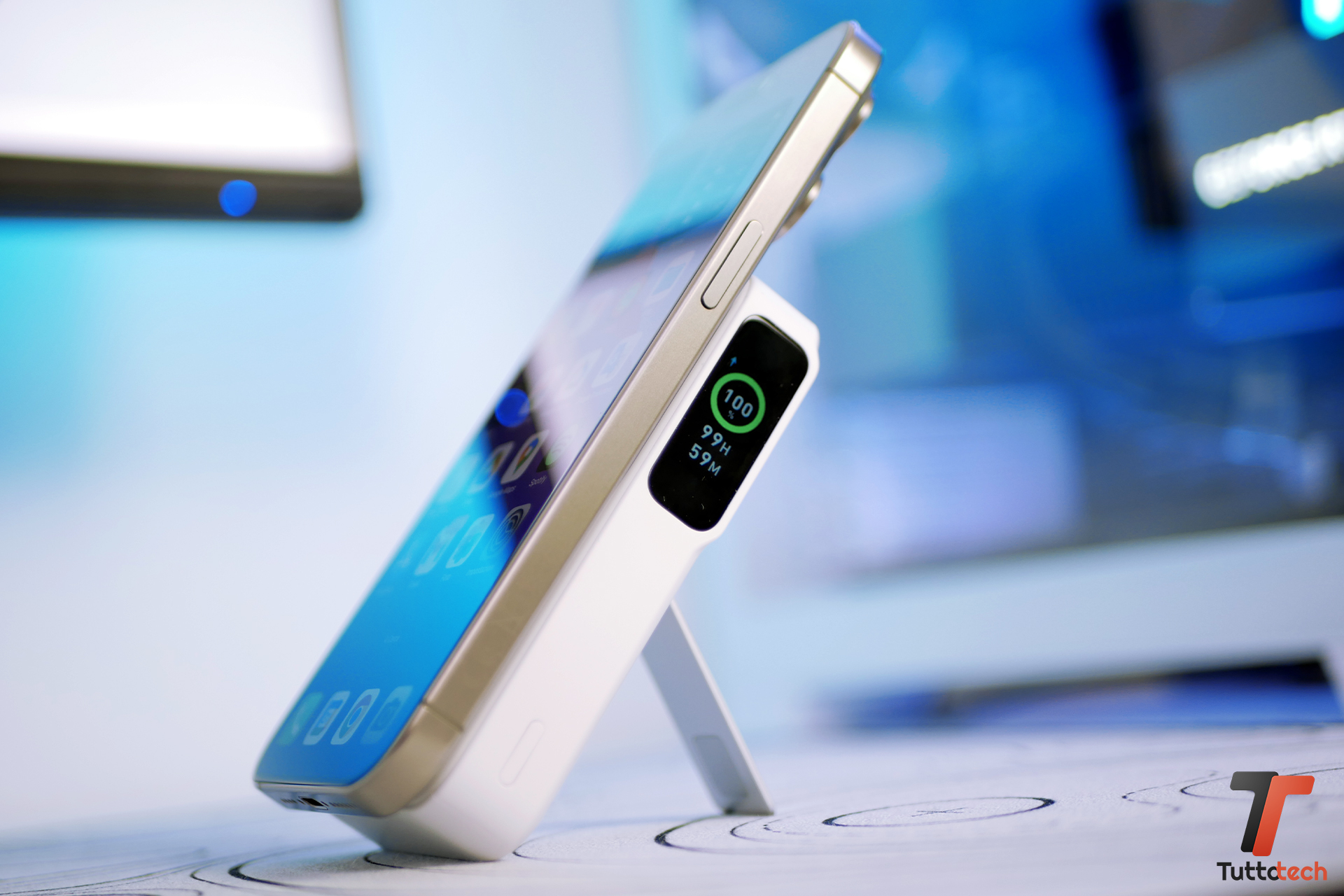 Interessante la possibilità di mantenere sempre sotto controllo il processo di ricarica grazie al display integrato per visualizzare le percentuali di batteria, i tempi di ricarica completa e lo stato generale del power bank Magsafe da 10.000 mAh. Inoltre, lo stand apribile integrato consente di utilizzare il dispositivo in verticale o in orizzontale per contenuti social o video molto comodamente.